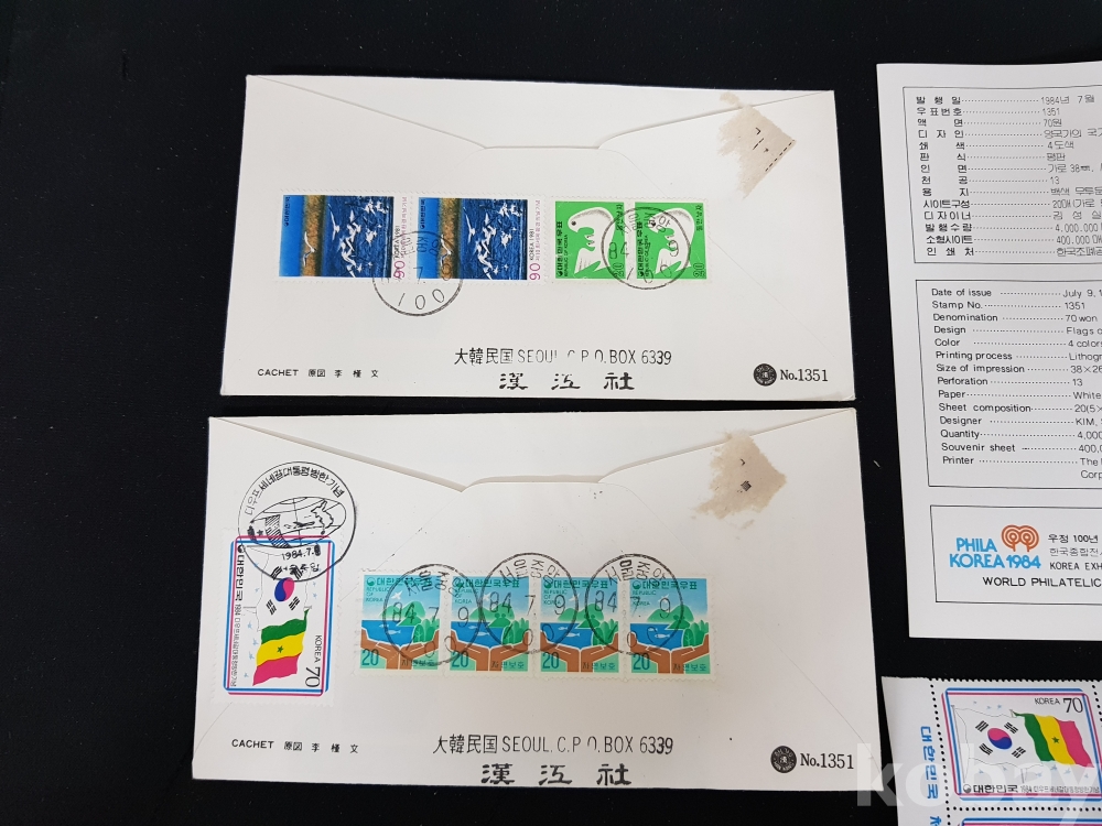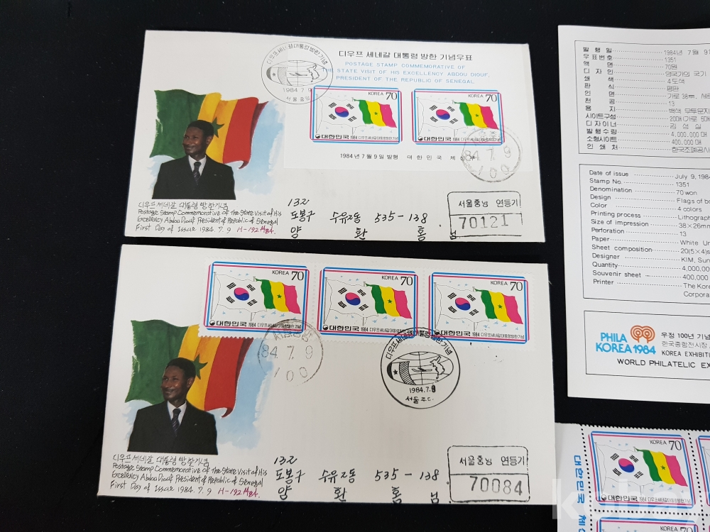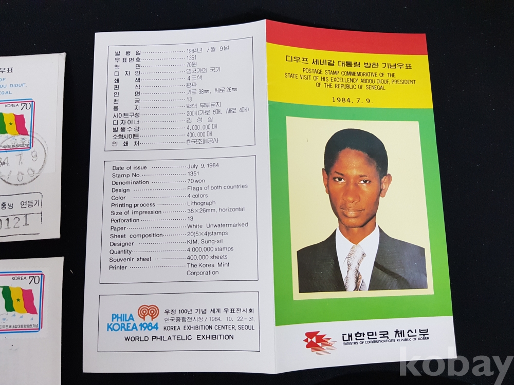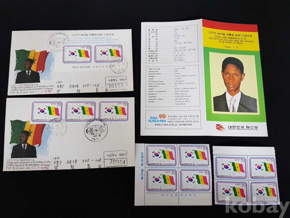 - 1984년 디우프 세네갈 대통령 방한 기념 안내카드, 초일봉피, 명판 등 모음