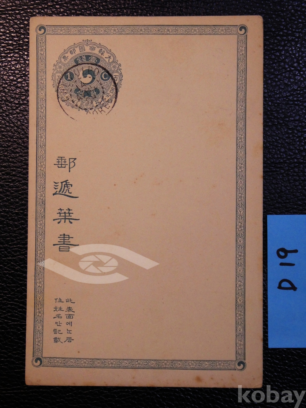 ▣근대한국엽서(진본): 대한제국, 구한국우편엽서, pc6 프랑스정부 인쇄엽서/1매/매우 귀함/일제강점기 우편엽서, 사진엽서, 그림엽서, 회엽서. D19