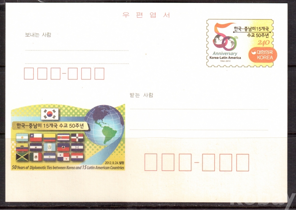 (기념엽서) 2012.9.24 CPC180 한국-중남미 15개국 수교 50주년 (240원)