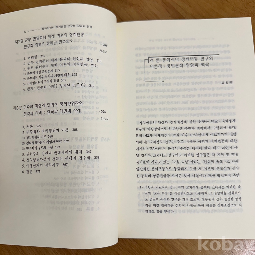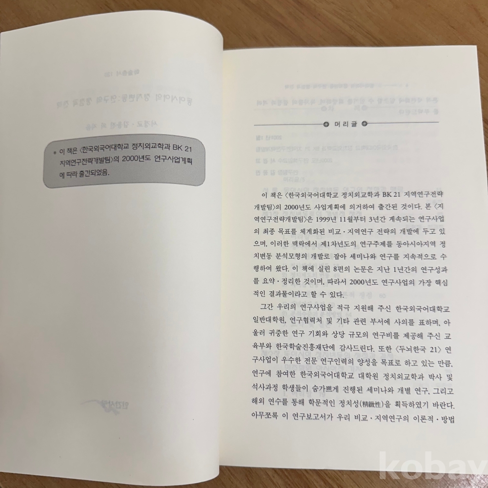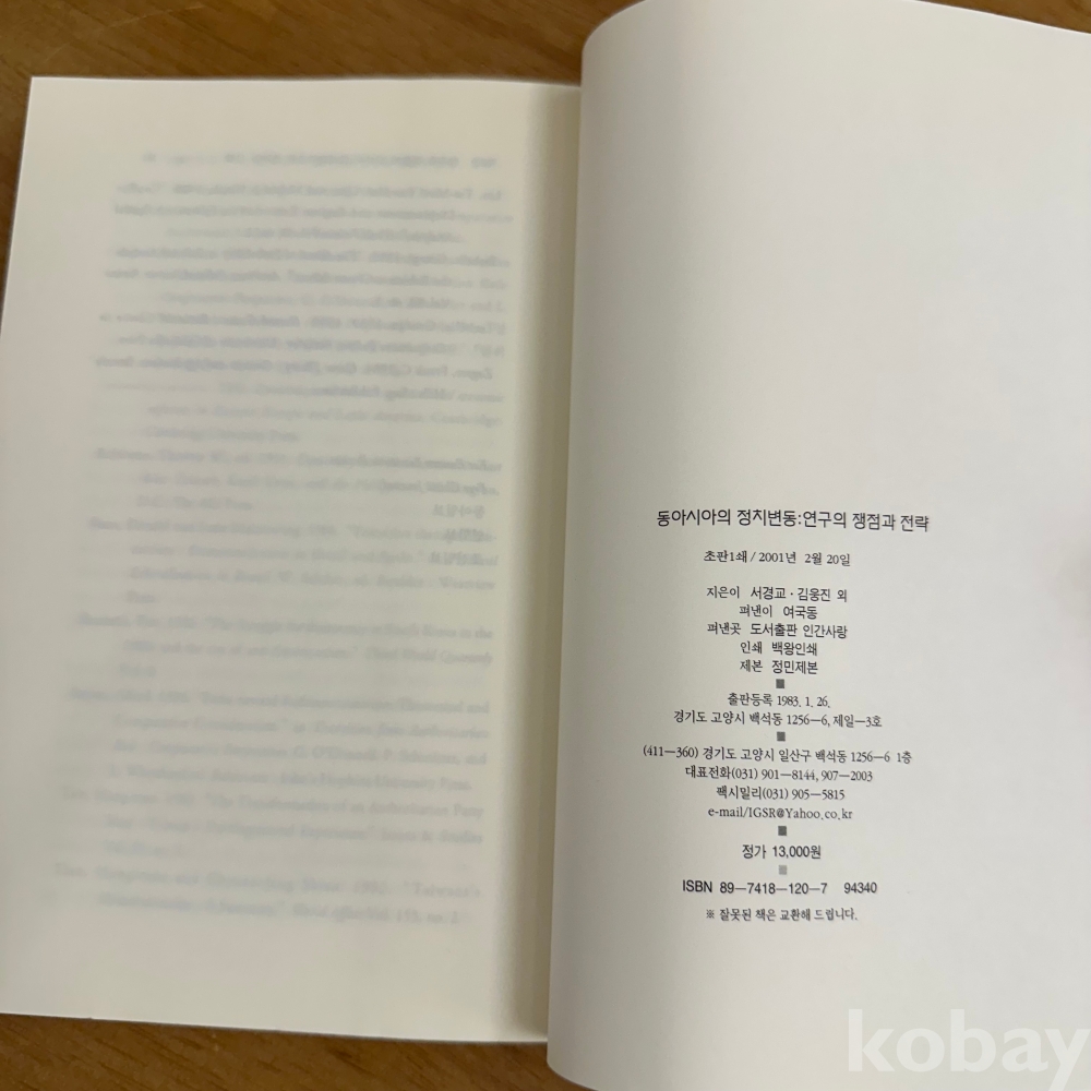 [동양사, 동아시아사] 김웅진, 서경교, 김용민, <동아시아의 정치변동_연구의 쟁점과 전략>, 인간사랑, 2001, p. 381, 상태 중급(사진참조)