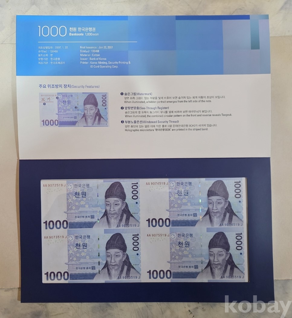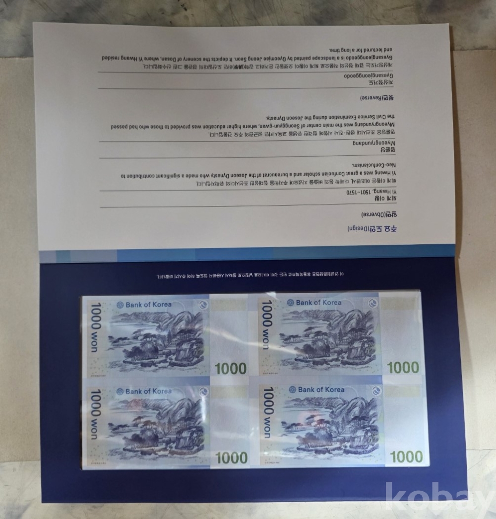 -대한민국 3차 천원 4면부 연결권 지폐첩 입니다.