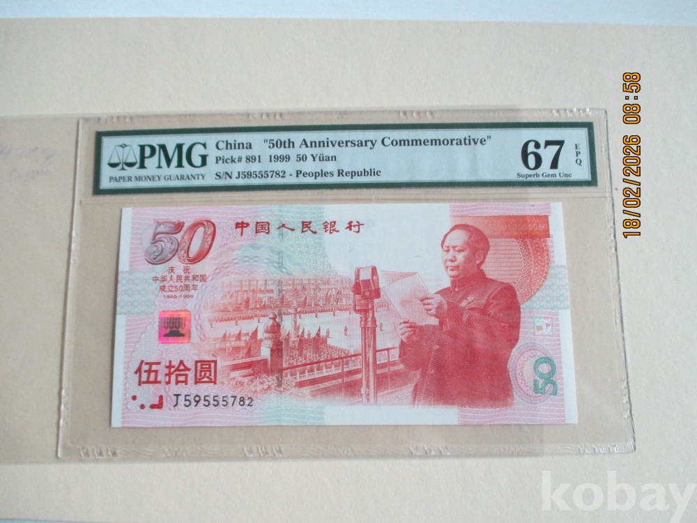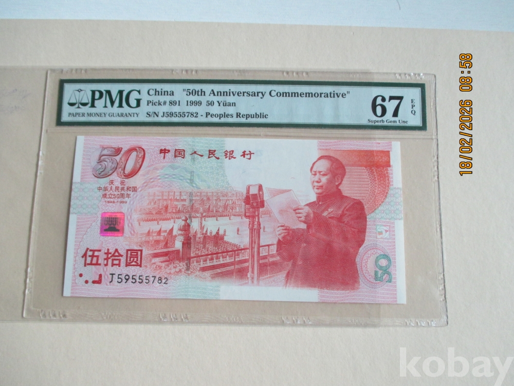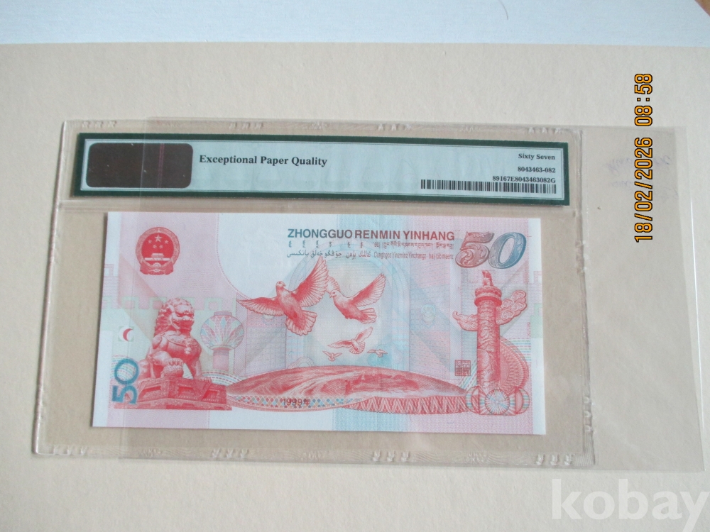 중국1999년 50돐 PMG 67 등급 기념지폐 미사용