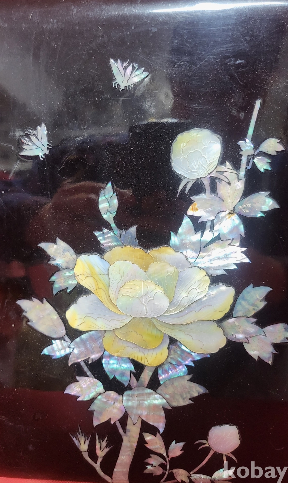 1963년 作 고급 자게로 완성된 꽃과 곤충(花蟲)문양 함입니다,