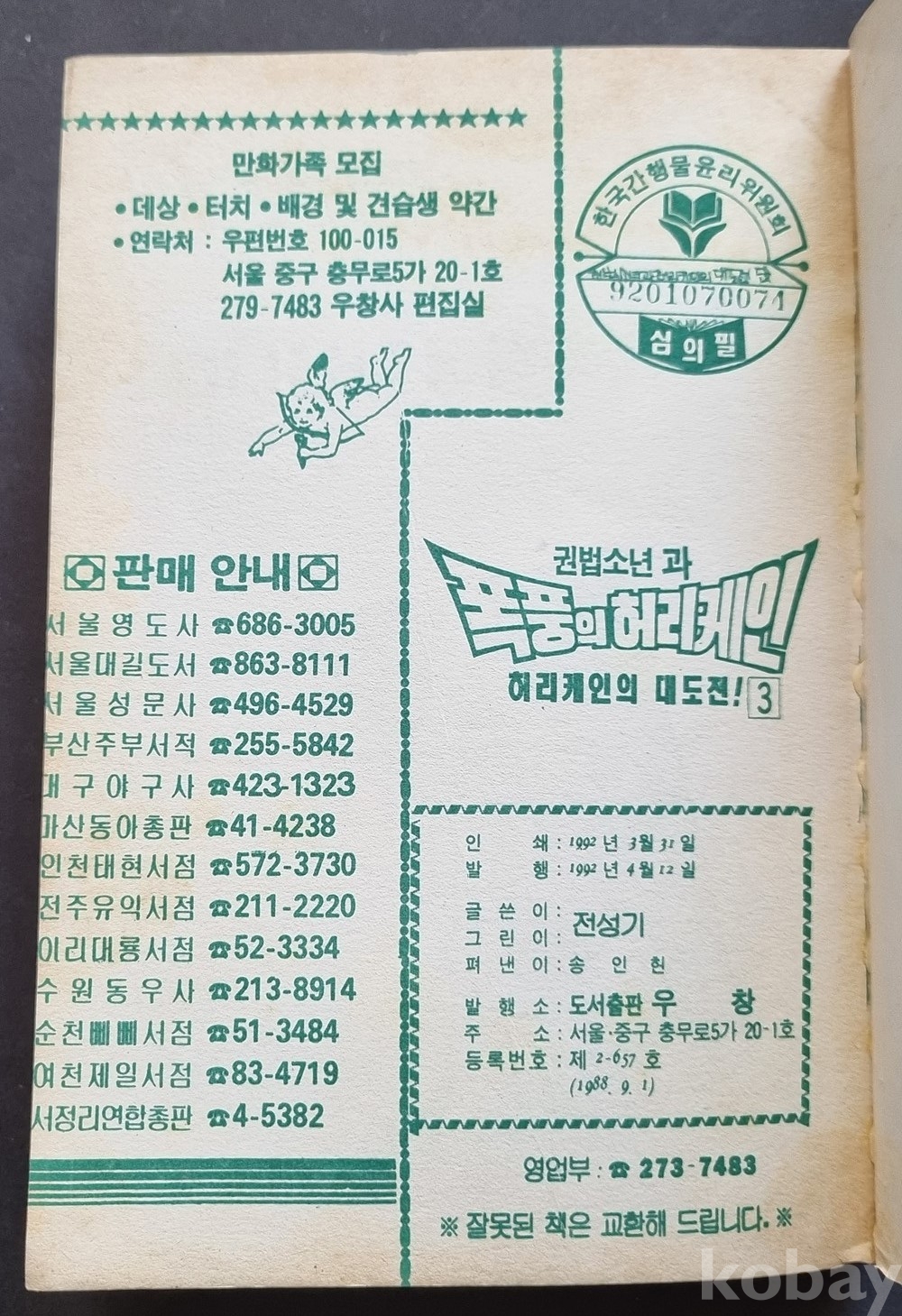 ee-34 / 스타 코믹스 만화 "권법소년과 폭풍의 허리케인" 전성기 글, 그림