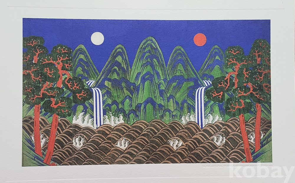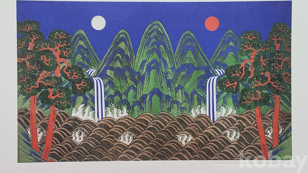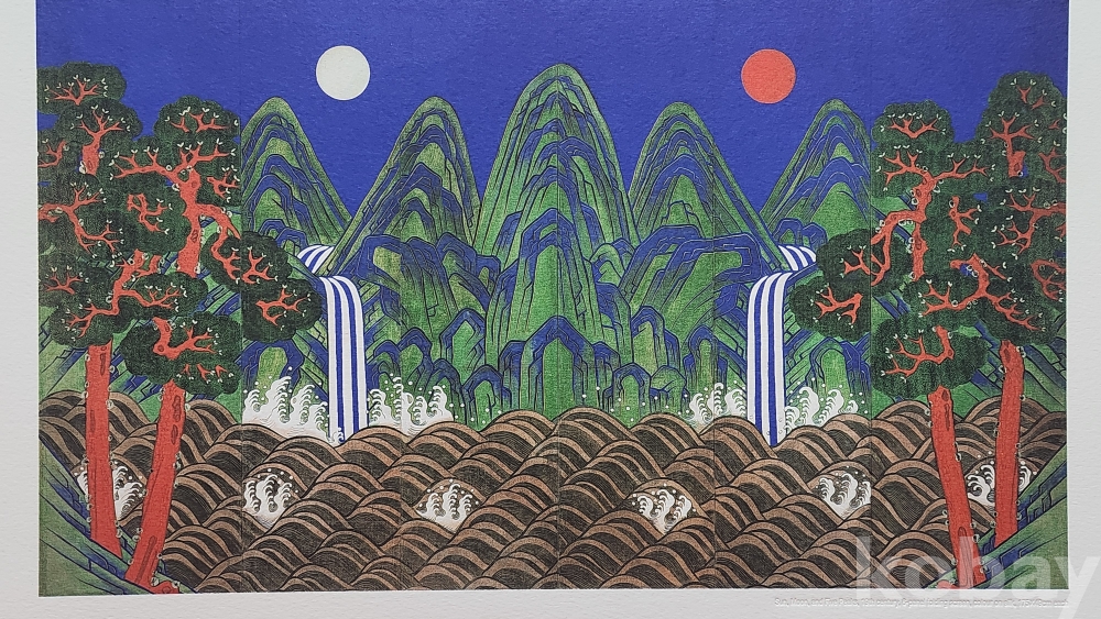 한국의 채색화 일월오봉도 (日月五峯圖) 압인(壓印)판화입니다,
