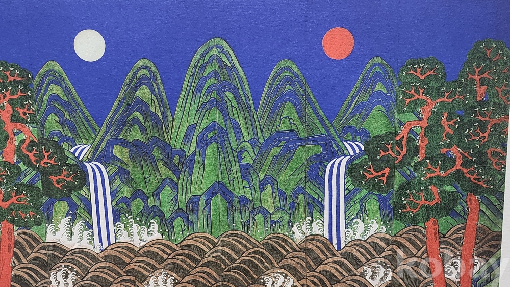 일월오봉도 (日月五峯圖) 란 조선시대 민화 중 하나로 왕실의 권위와 위엄을 상징하는그림입니다.