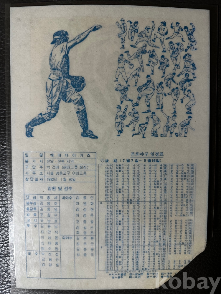 1980년대 프로야구 해태 타이거즈 책받침입니다