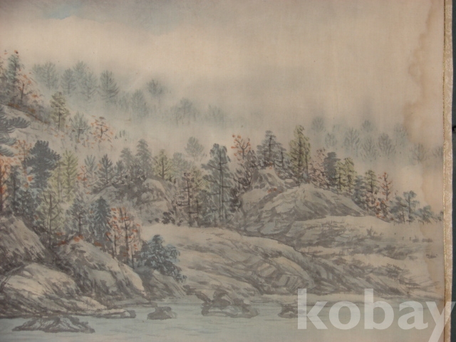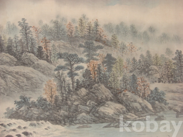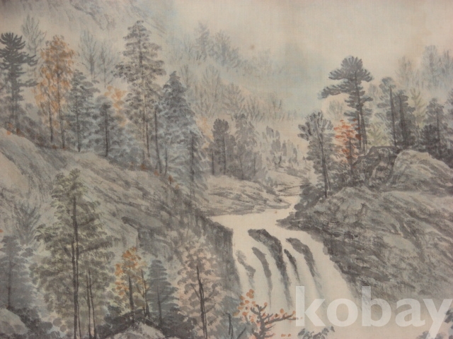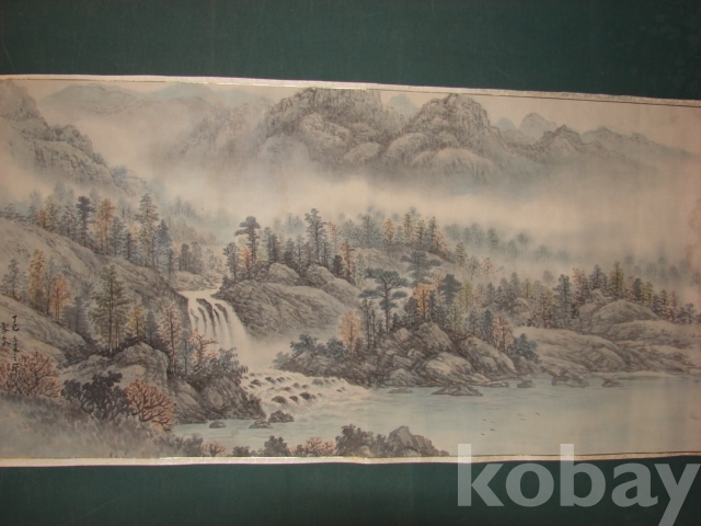 천바탕에 그린 설천(雪泉)의 산수화 소전지(54×108)입니다.