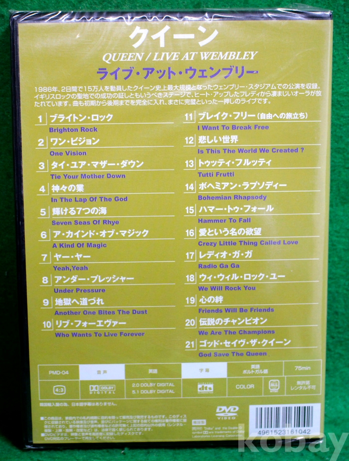 (일본제작 DVD 미개봉) Queen Live at Wembley - Brighton Rock / One vision / I want to break free...