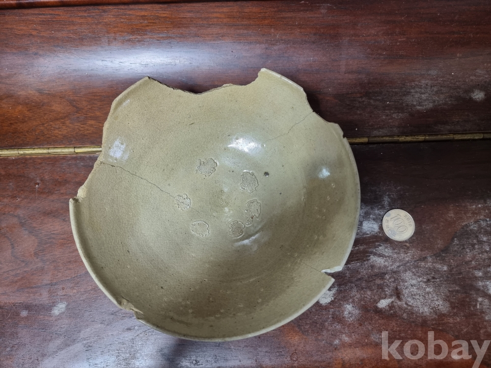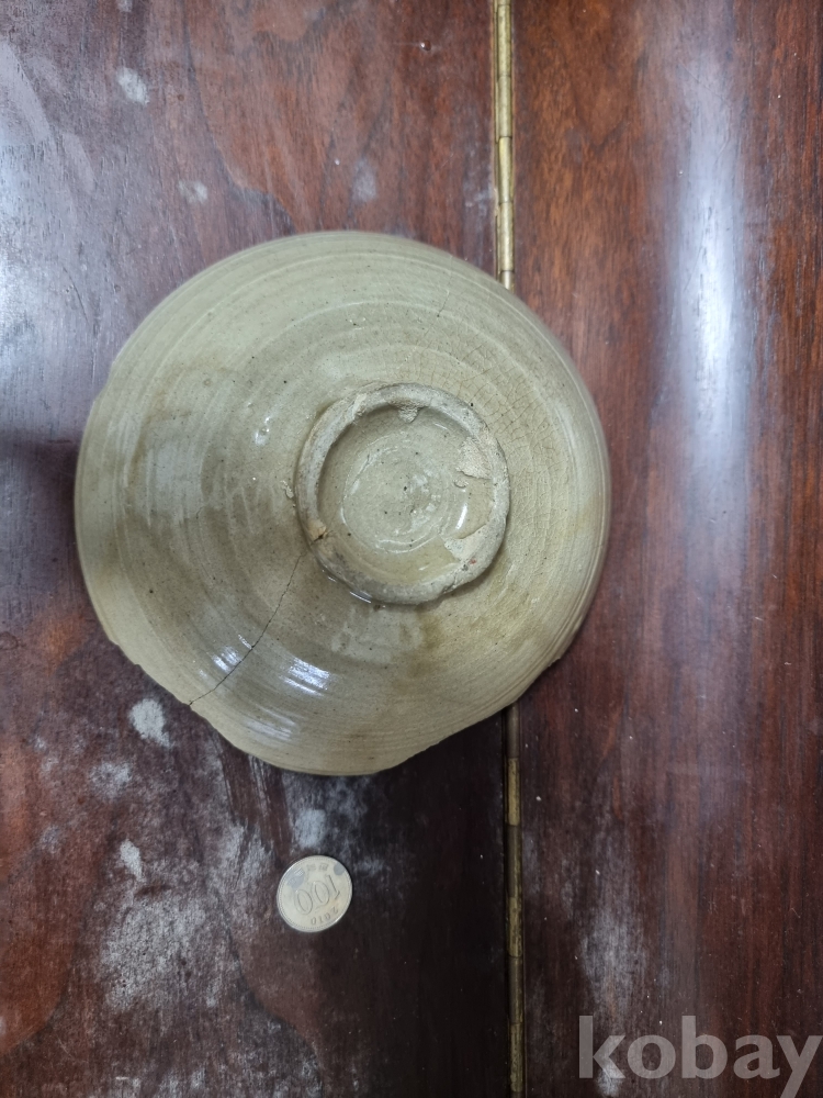 고려청자 황청자 대접입니다. 크기 가늠을 위하여 100원짜리를 올려뒀으니 참고 부탁드립니다. 물레 손자국이 존재하며 심심할 수 있는 무문 대접의 미적 완성도를 높여줍니다. 색감도 좋고 모양도 정교한 고급품이나 유가 있고 반으로 쪼개어져 제살붙임 수리가 존재합니다. 이점 감안하여 저렴하게 올리니 많은 입찰 부탁드립니다.