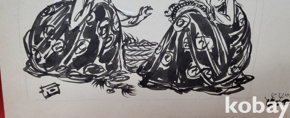 ### 스케치 북에 그린 것으로 어떤 삽화 뒷면에는 1984ㅡ5년 8월 ㅡ10월등의 날인(日印)이 있읍니다,