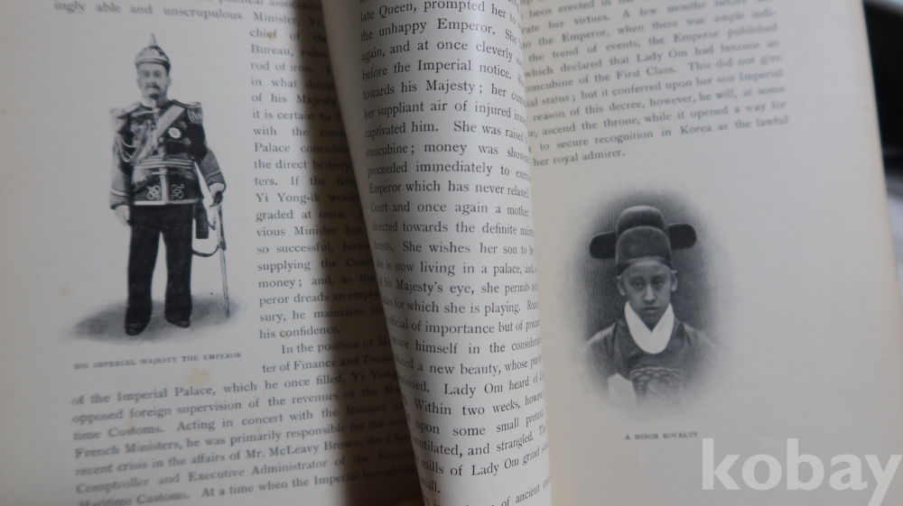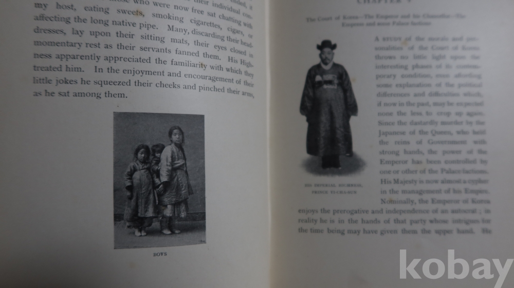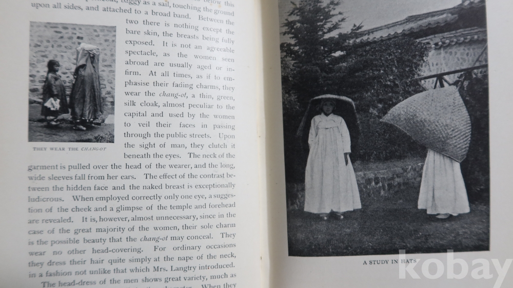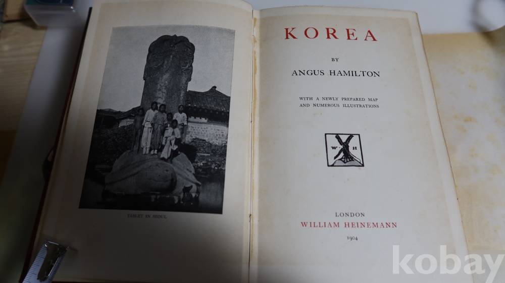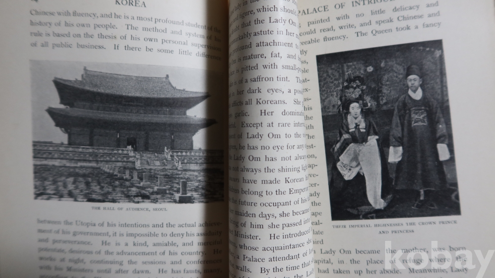1904년 영국에서 발행 된 하드 카바 이며 309페이지에 걸쳐 수많은 귀한 사진을 가진 초판본의 구한말 조선 사진을 가진 명저 임니다 세월의 반점 등이 보이는 117년전 낙장없는 명물 워낙 귀한 사진을 가진 명저