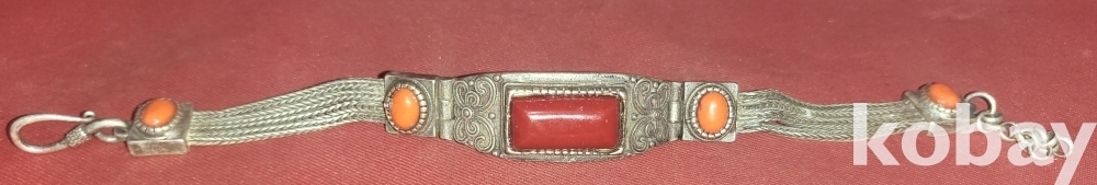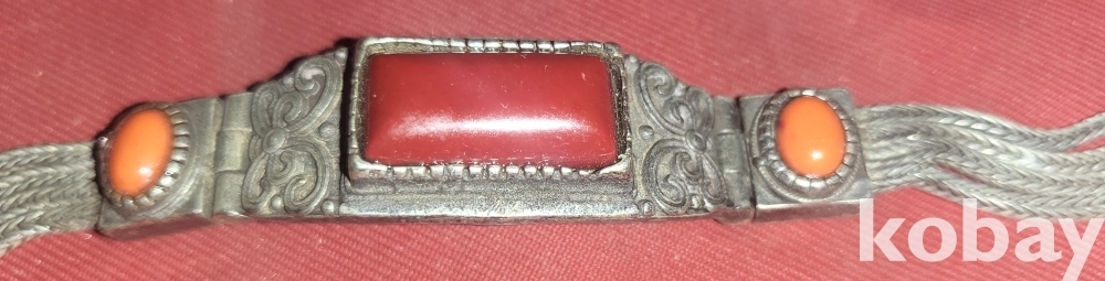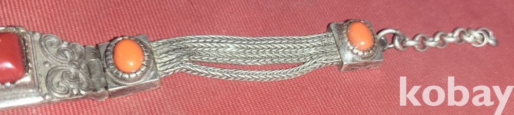 루비와 주황색 보석으로 완성된 성인 여성용 팔지입니다,