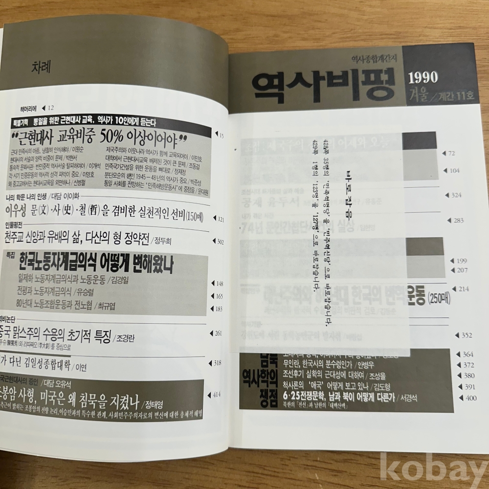 [한국현대사, 레닌주의, 노동자, 6.25문학] 역사문제연구소, <역사비평 1990 겨울>, p. 429, 상태 중급(사진참조)