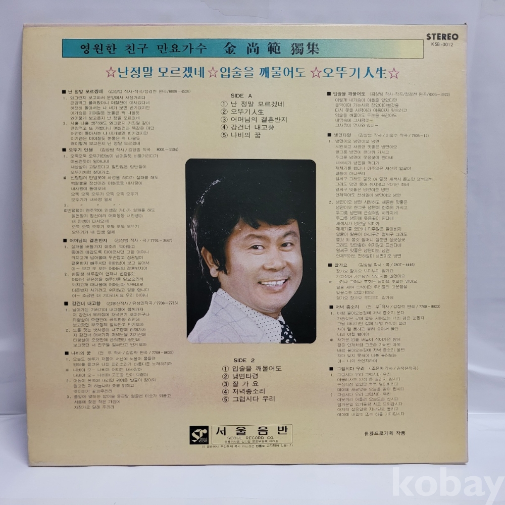| 자켓상태 | EX : 약간의 마모, 모서리 찢김 존재 | 음반상태 | NM : 개봉했으나 미사용급, 스크래치 없음 | 발매정보 | 초반 | 가사지여부 | 무 |