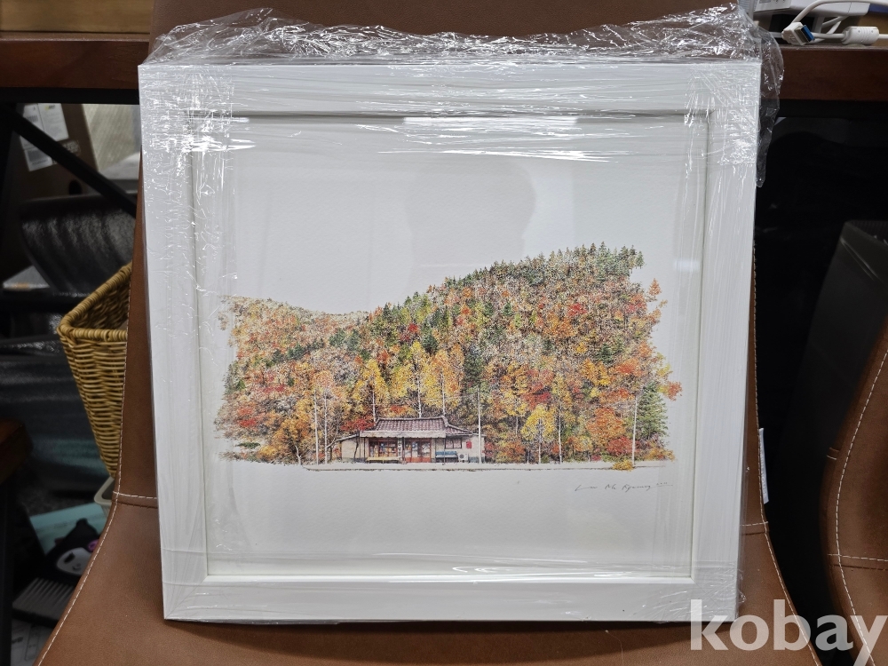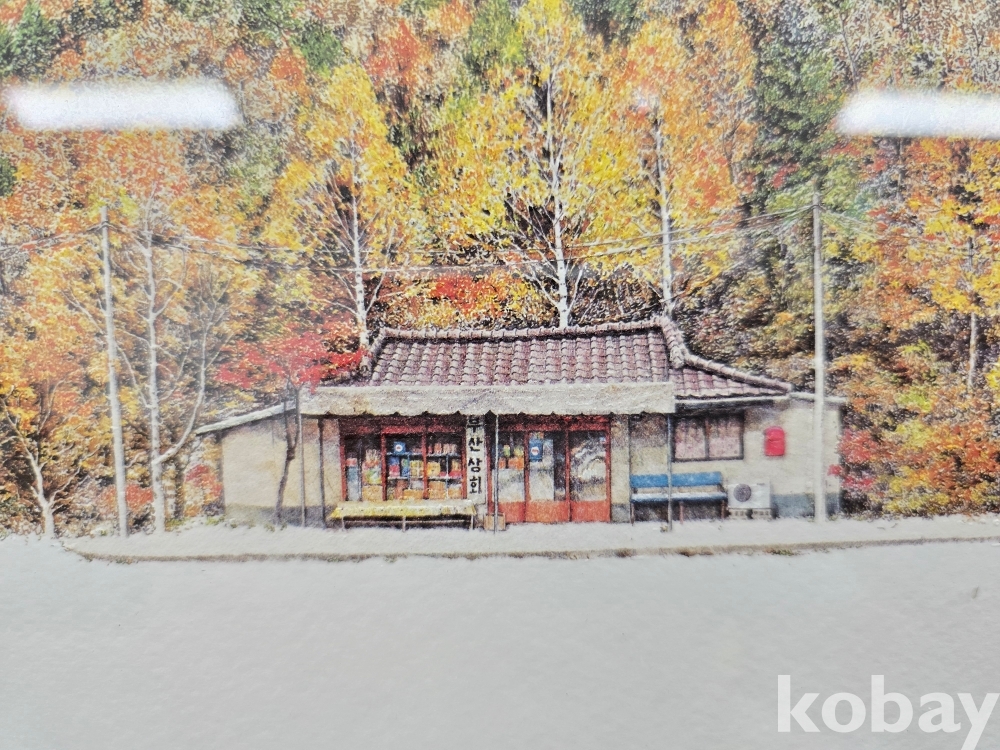 본 작품은 구멍가게 건물이 화면 중심에 배치되고, 그 뒤편으로 수목 풍경이 이어지는 구도로 구성돼 있다. 마티에르 기법이 적용된 판화 작업으로, 화면 표면에 물성이 형성돼 가게 외형과 주변 요소들이 입체적으로 표현돼 있다. 여백을 살린 안정적인 화면 구성 속에서 일상 풍경의 차분한 분위기가 전달된다.