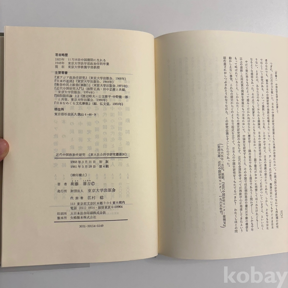 [중국근대사, 아편전쟁, 태평천국, 애로우호 전쟁] 동경대학출판부, <근대 중국 정치사연구>, 동경대학출판부, 1981, p. 302, 중급(세월의 흔적, 하드케이스, 사진참조)