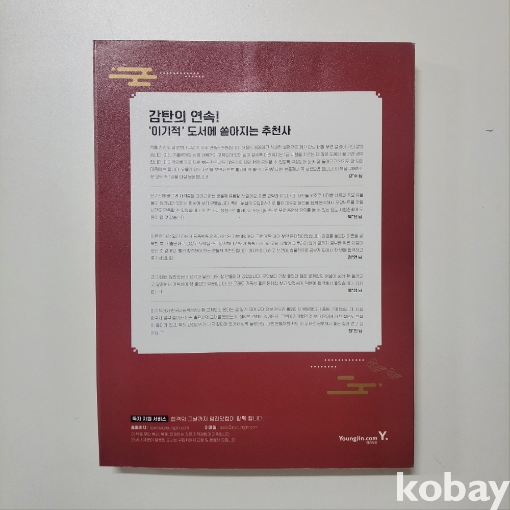 [천원경매] 이기적 한국사능력검정시험 심화 - 동영상강의 무료 + 추가 부록자료 제공 + CBT모의고사 체험권 + 개편된 심화 최신 기출문제 수록 >>> 최상급/ 유통안된 책 / 정가 22,000원 (서고-단15)