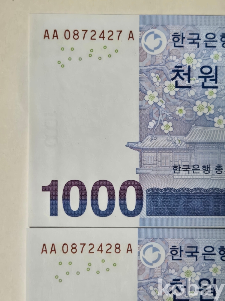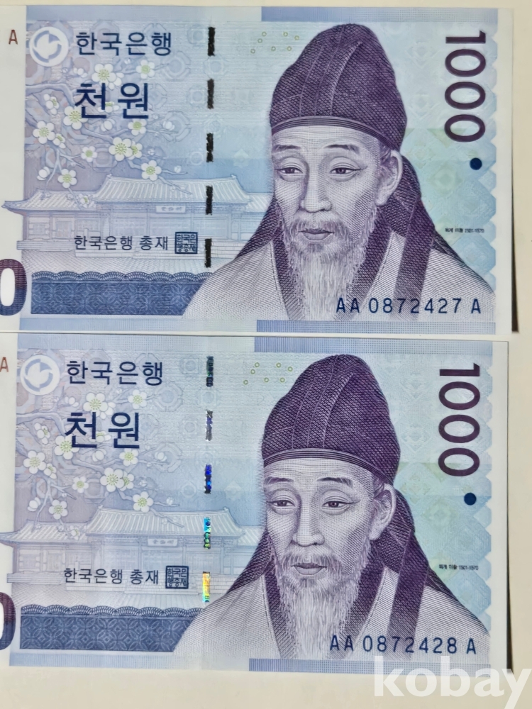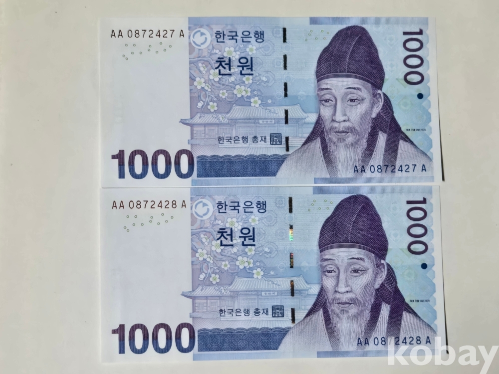 빠른번호 초판 AAA 08포인트 1000원권 연번호 2매 일괄 ==완전미사용 2매 일괄