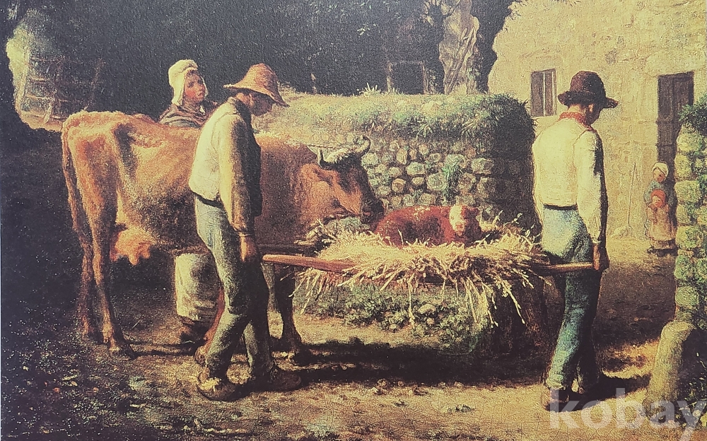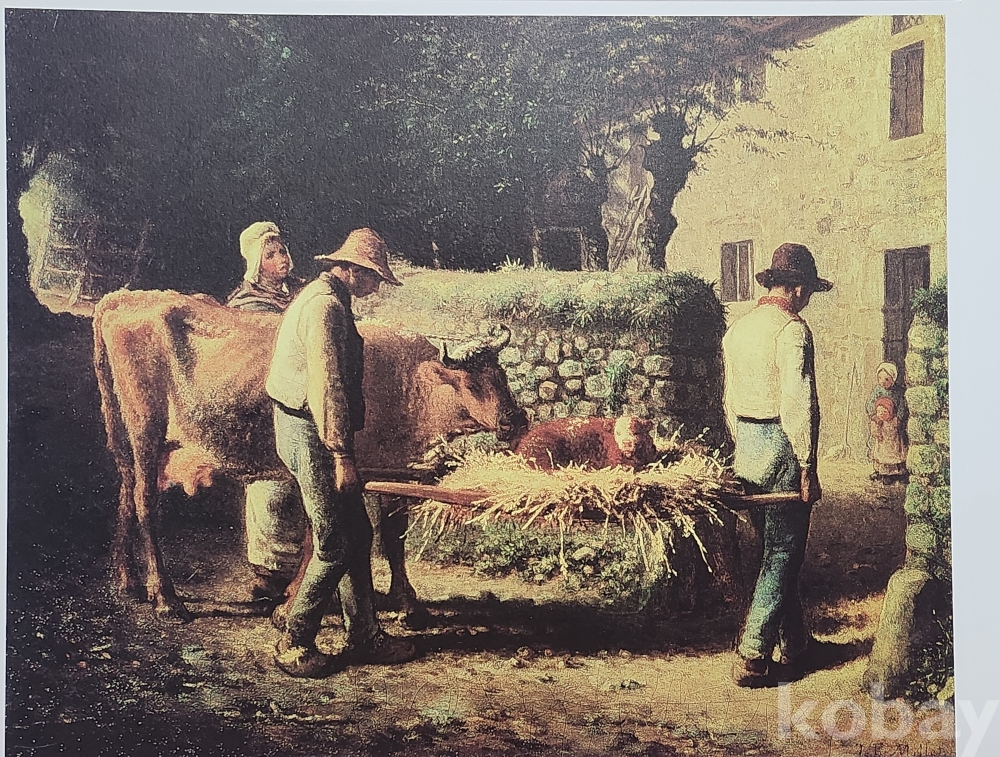 프랑스 유명화가 장프랑수아 밀레(Jeanㅡ Francois )대표작품 "송아지의 탄생"압인(壓印)판화입니다,