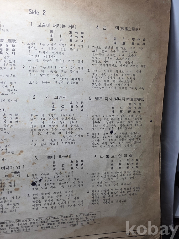 | 자켓상태 | EX : 약간의 마모, 모서리 찢김 존재 | 음반상태 | VG : 생활 기스 다수, 가벼운 노이즈 존재 | 발매정보 | 초반 | 가사지여부 | 유 |