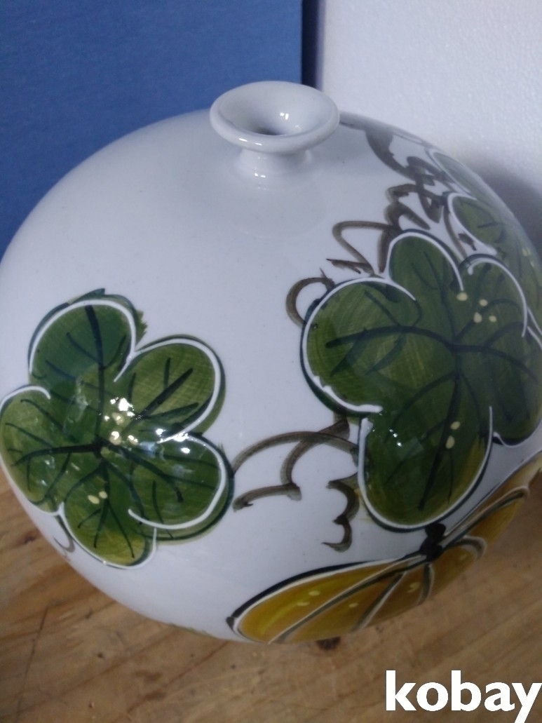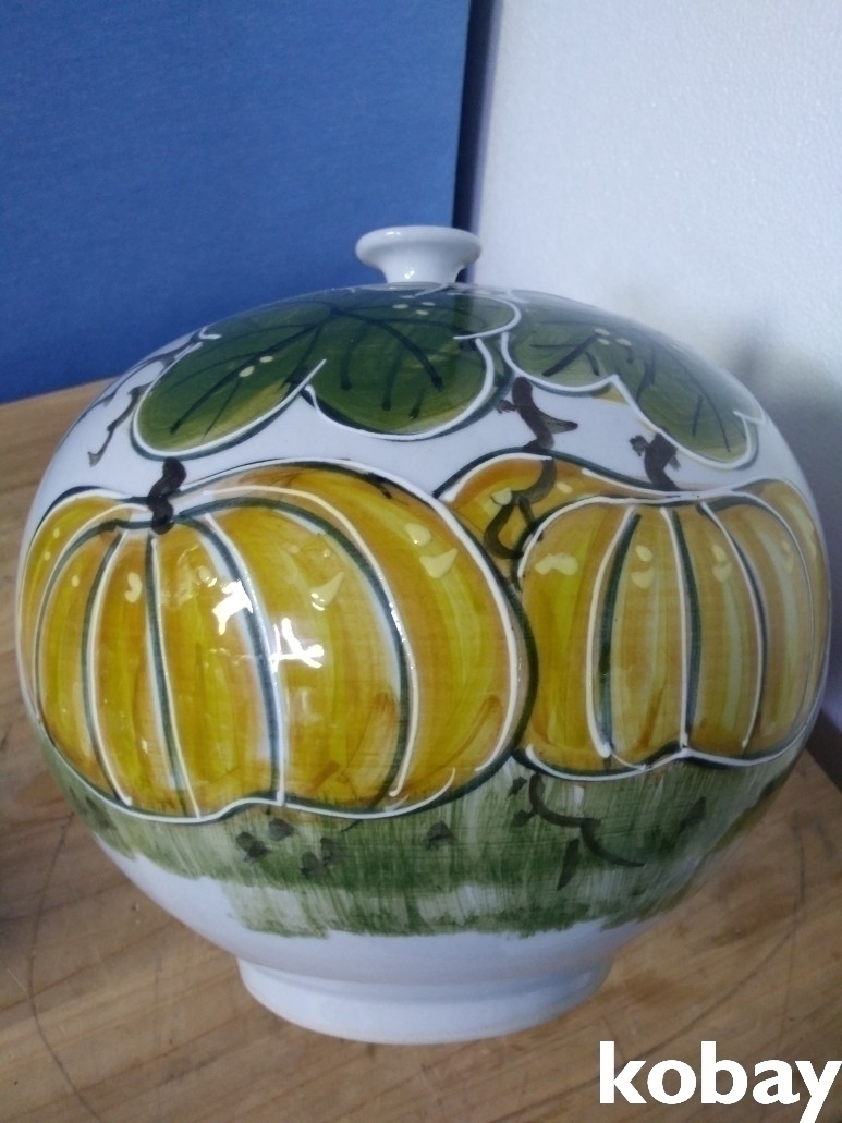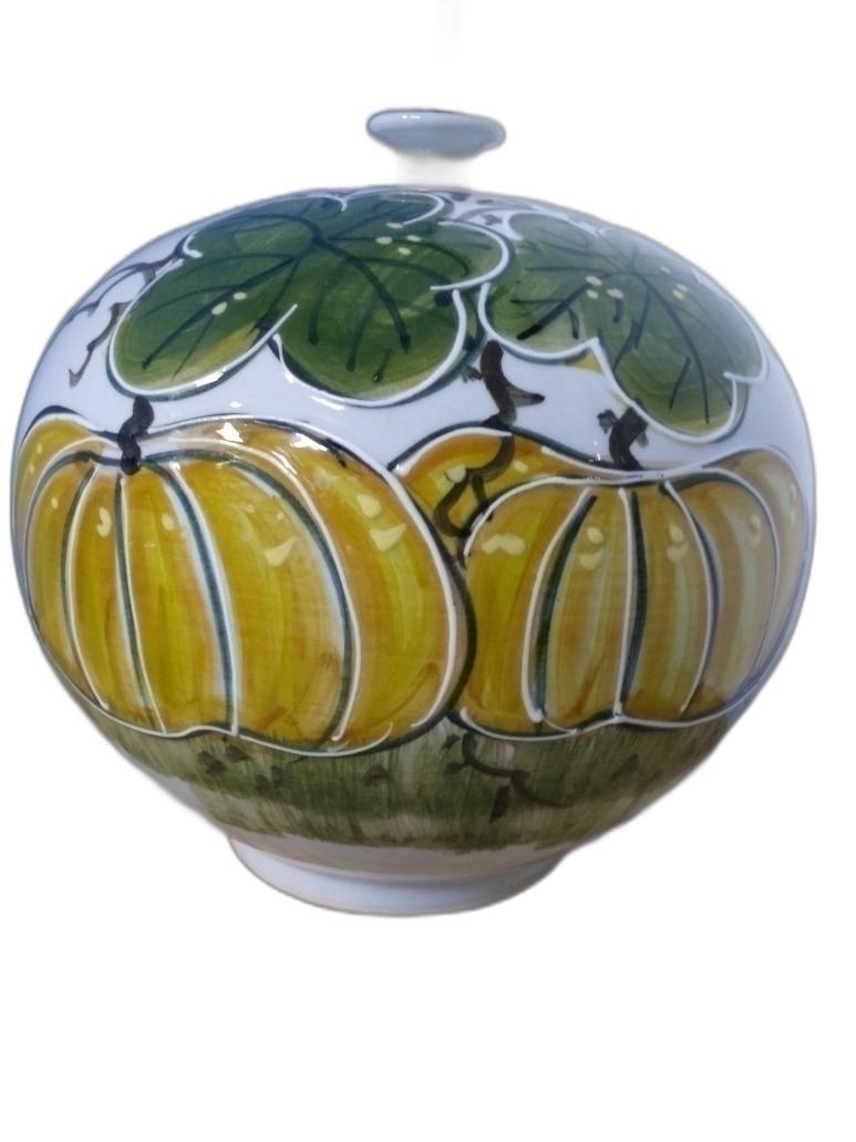호박 문양을 아름답게 표현한 입이 작은 도자기 입니다.