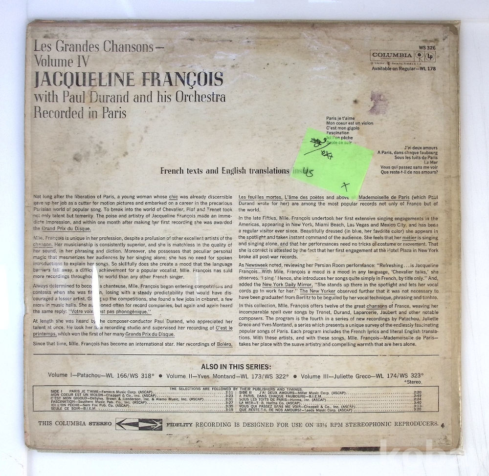 Jacqueline François With Paul Durand And His Orchestra – Les Grandes Chansons (Volume IV) / 미국반