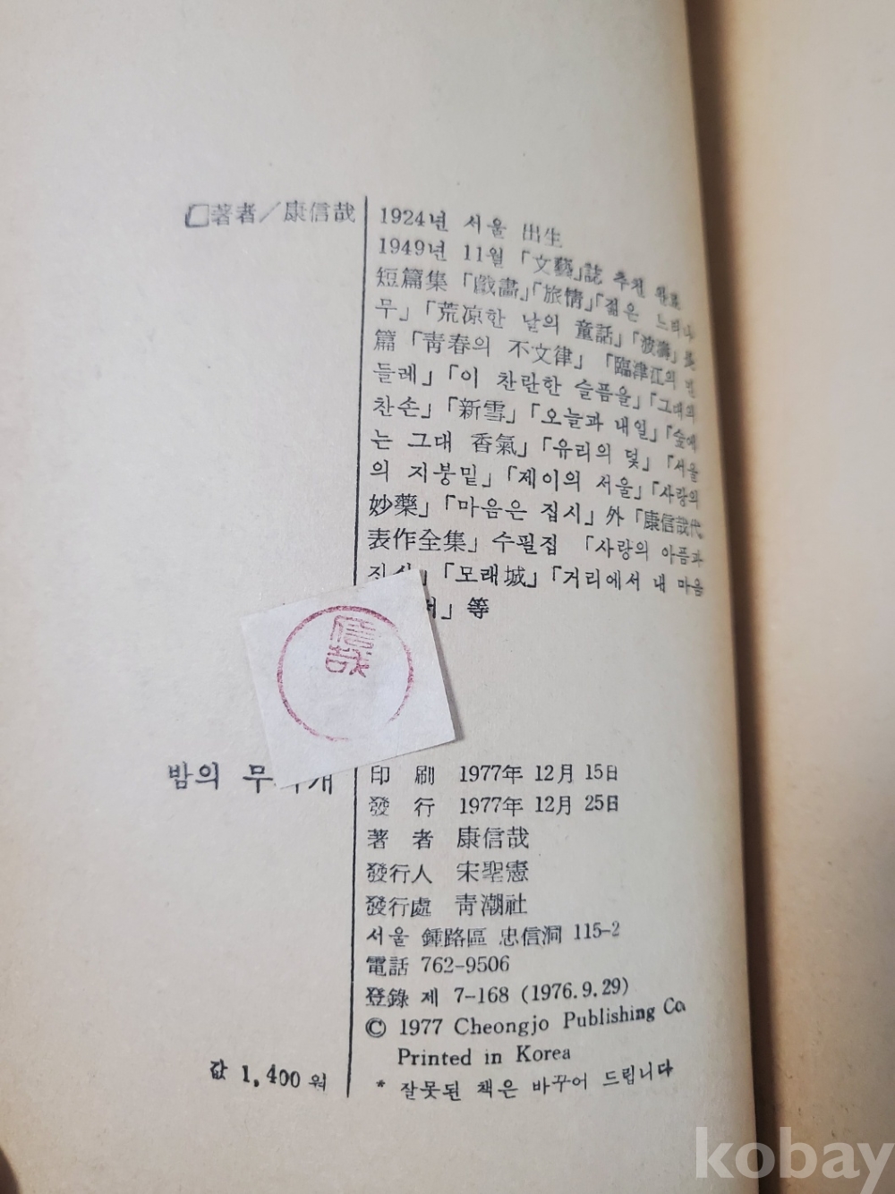 1. 밤의 무지개, 강신재, 청조사, 1977년, 366쪽, 상태 중(꺼풀 없음), 사진 참조