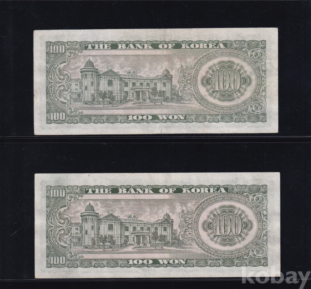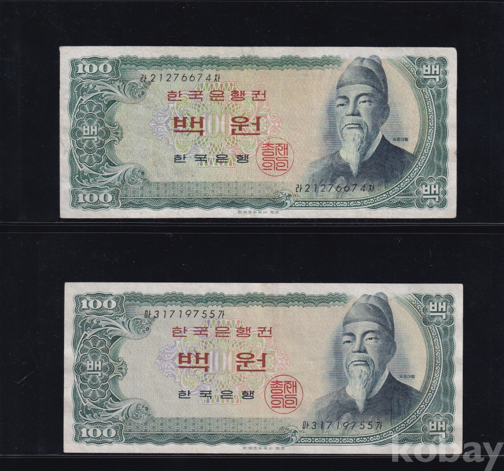 - 한국은행 1965년 세종 백원 줄세우기 2/3 포인트 미품 (+) ~ 극미 지폐 - 2장 일괄