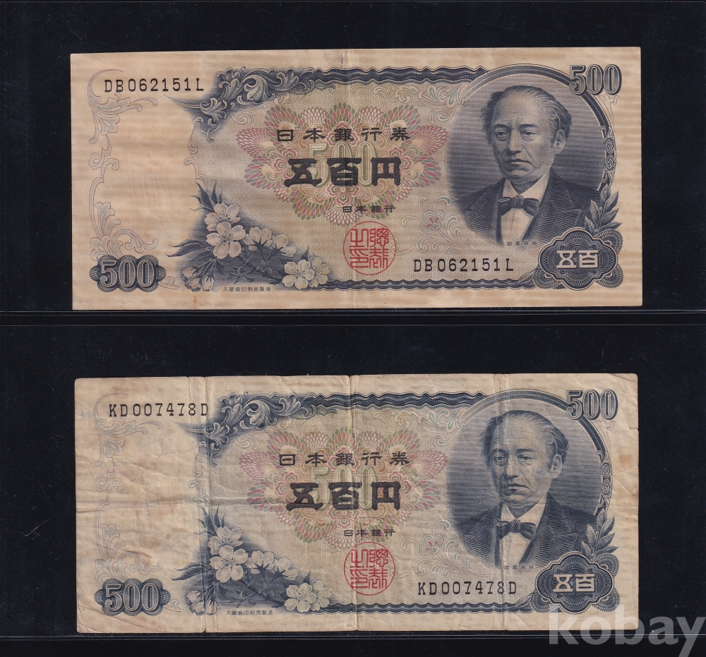 - 1969년 오백엔 사용제 지폐 - 2장 일괄