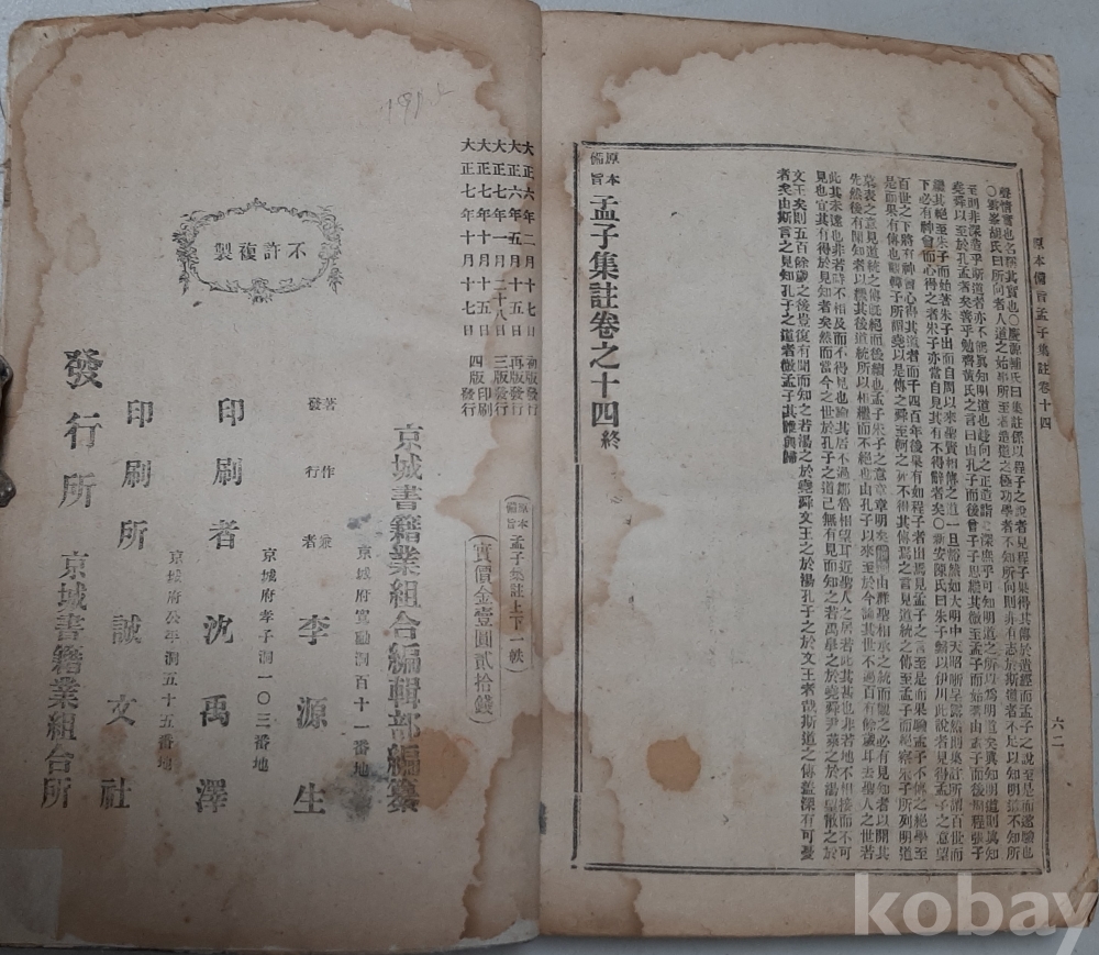 낙장 낙서 없음, 표지 책등 완전, 14권2책 낙질, 반품불가, 반품시 반품비용 구매자부담조건 판매, 크기는 정확하지 않음