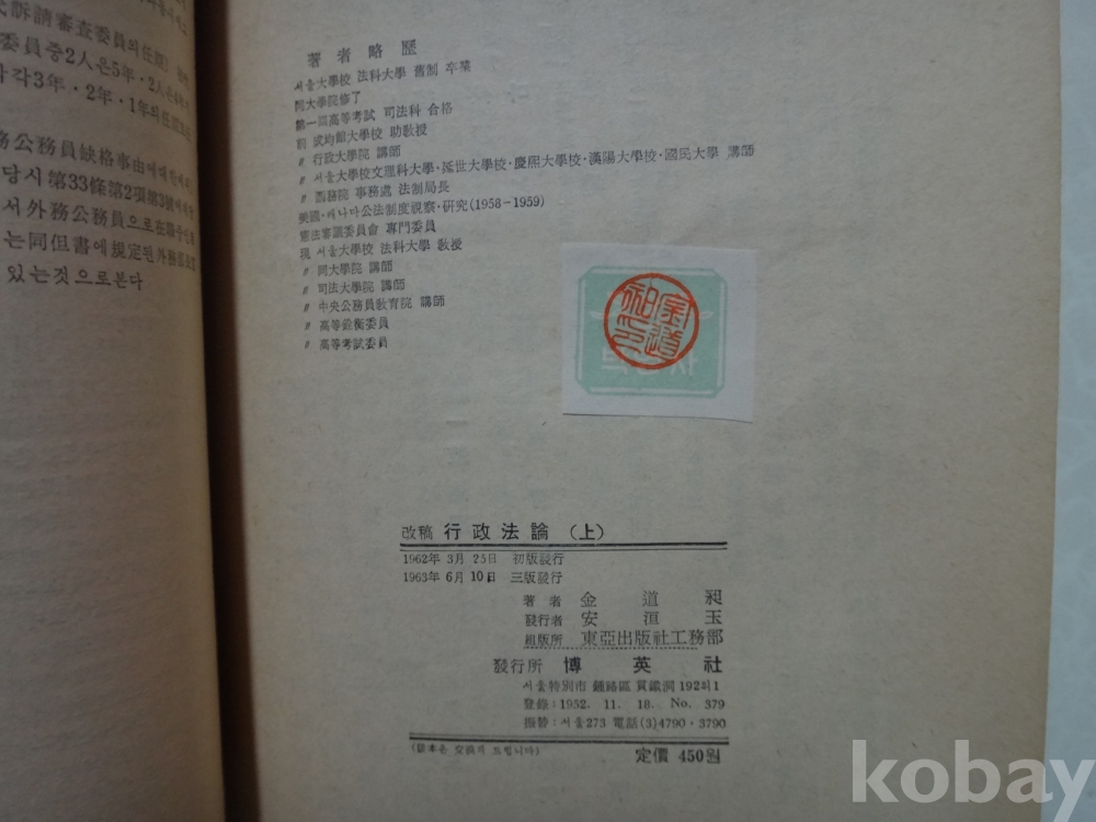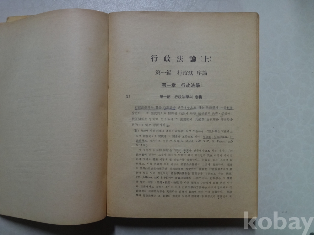 행정법론 (1963년, 김도창 저, 박영사)