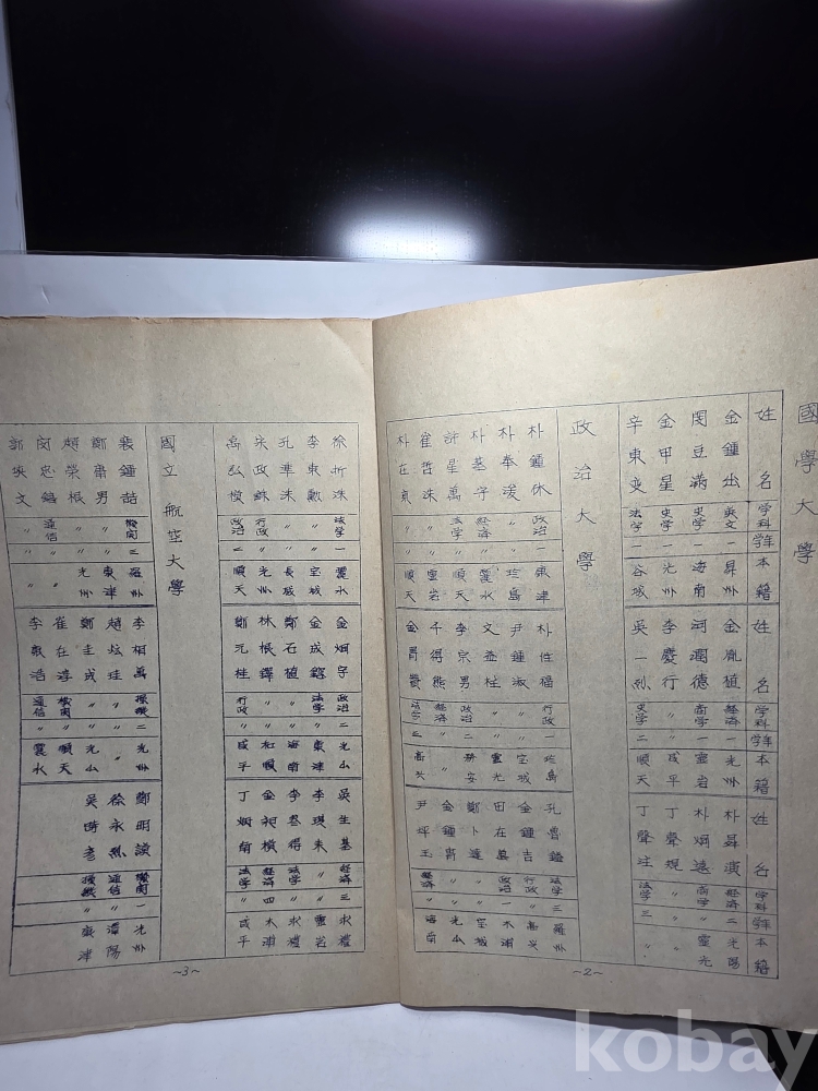 학우회 회원 명단.