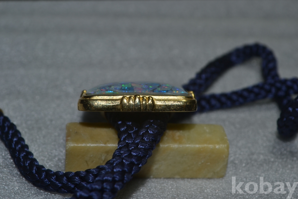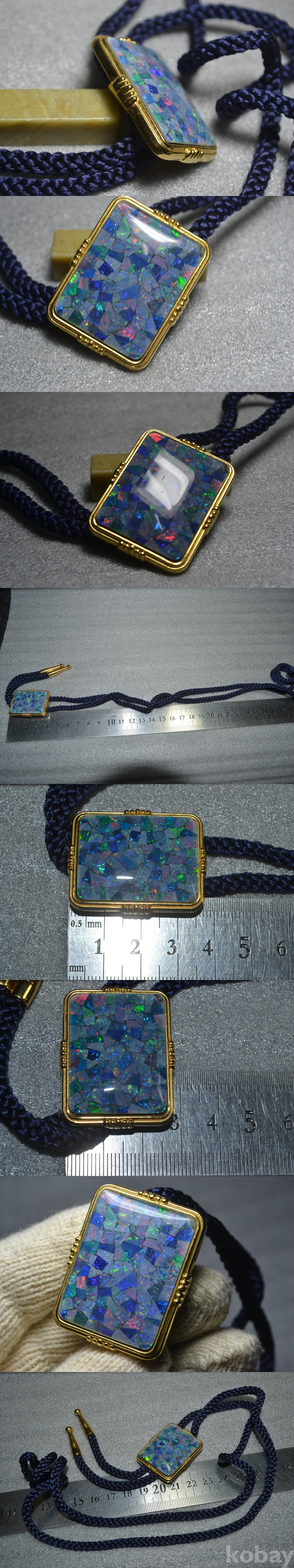 " 흔치않은 종류~ 매우 이쁜 아름다운 모자이크 오팔보석 ".. 모자이크오팔 장식판 고급 큰지름~ 3.2 cm X 2.4 cm~ 묵직하고 튼튼한 금장 금속메탈 디자인~ 색상이 화려하고 아름다운 오팔보석 장식 루프타이 목걸이 / 깨끗하고 좋은 보존상태~