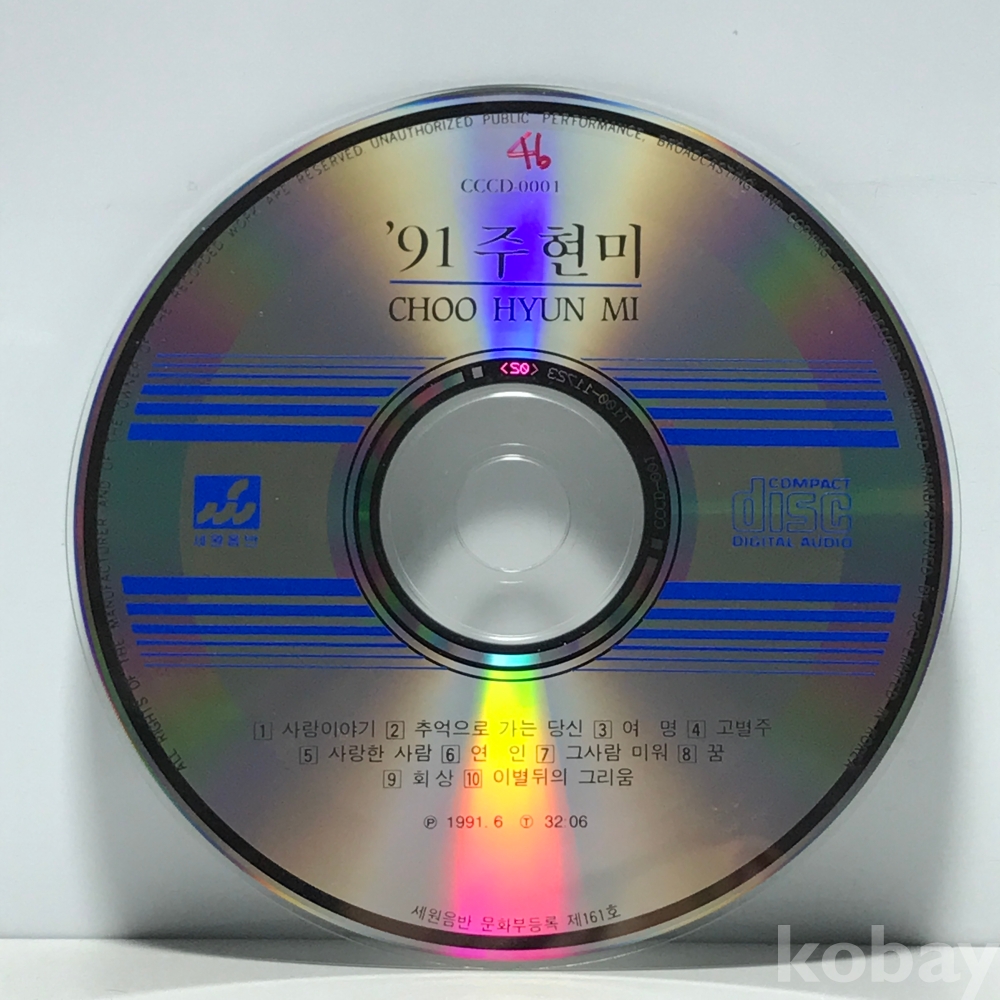 CD 5,960-154 주현미 '91 (사랑이야기) 자켓 : 자켓없음 디스크 : 사용품 잔기스조금