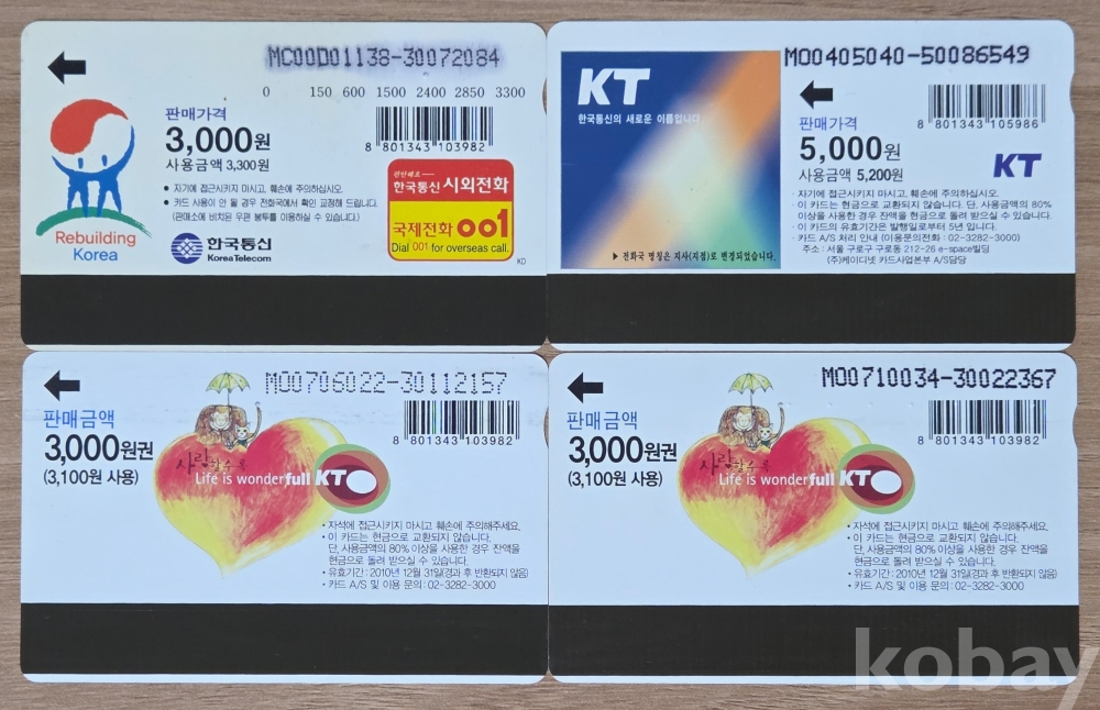희귀 8-90년대 공중전화카드 4종 #46