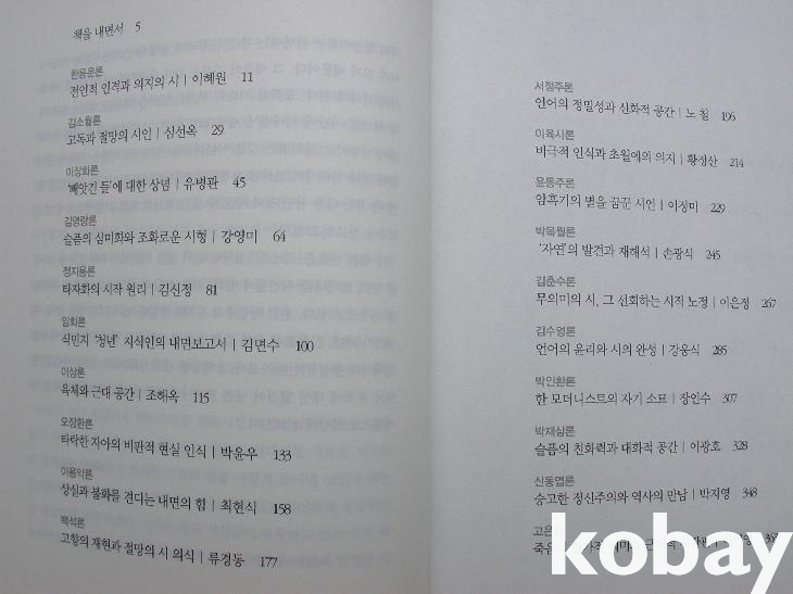 편자는 머리말에서 전문적인 독자의 시인론인 이 책은 "한국의 현대시를 새로운 시각으로 살펴보는 일과 함께 진지한 성찰의 결을 어떻게 풀어낼 것인가 하는 문제"를 고심하였다며 "한국 현대시의 변화된 지형을 발견하고 새로운 시각을 확보"하였고 자신의 모습을 발견하기에 이르렀다고 하였다.