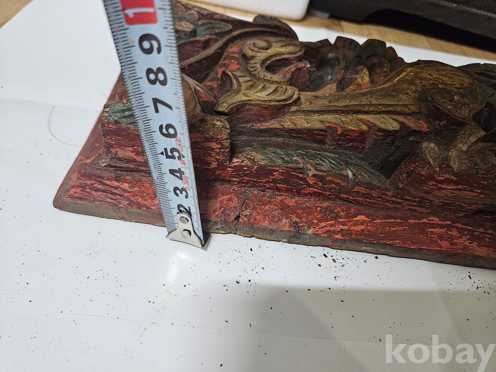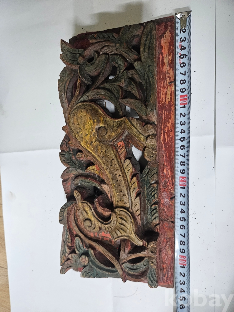 상태 및 색감: 세월의 흔적이 느껴지는 자연스러운 **단청 색감(붉은색, 녹색, 황색)**이 남아 있어 고풍스러운 분위기를 자아냅니다. 나무의 질감이 잘 살아있으며 큰 파손 없이 보존 상태가 양호합니다.