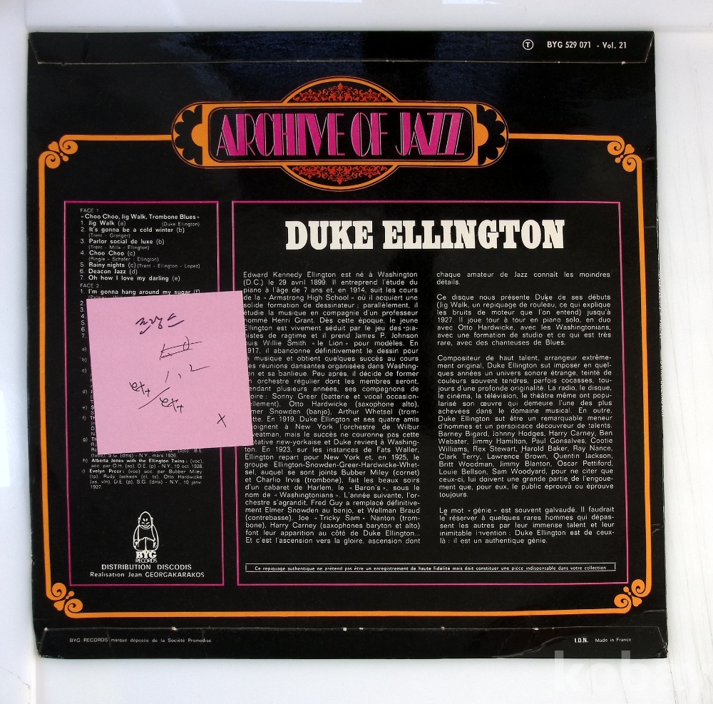 Duke Ellington – Archive Of Jazz Volume 21 - Choo Choo - Jig Walk - Trombone Blues / 프랑스반