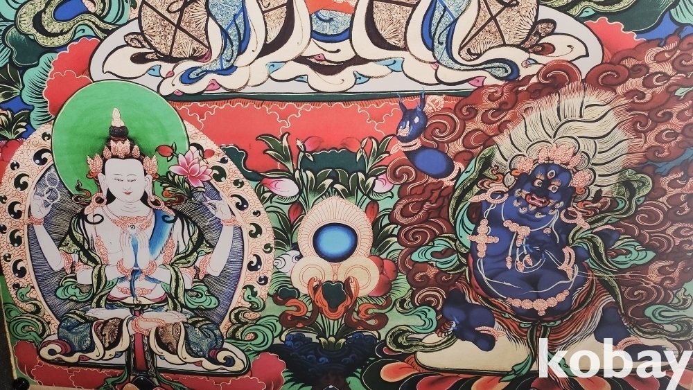 비단에 당채로 채색된 불교용품인 불화(佛畵)입니다,