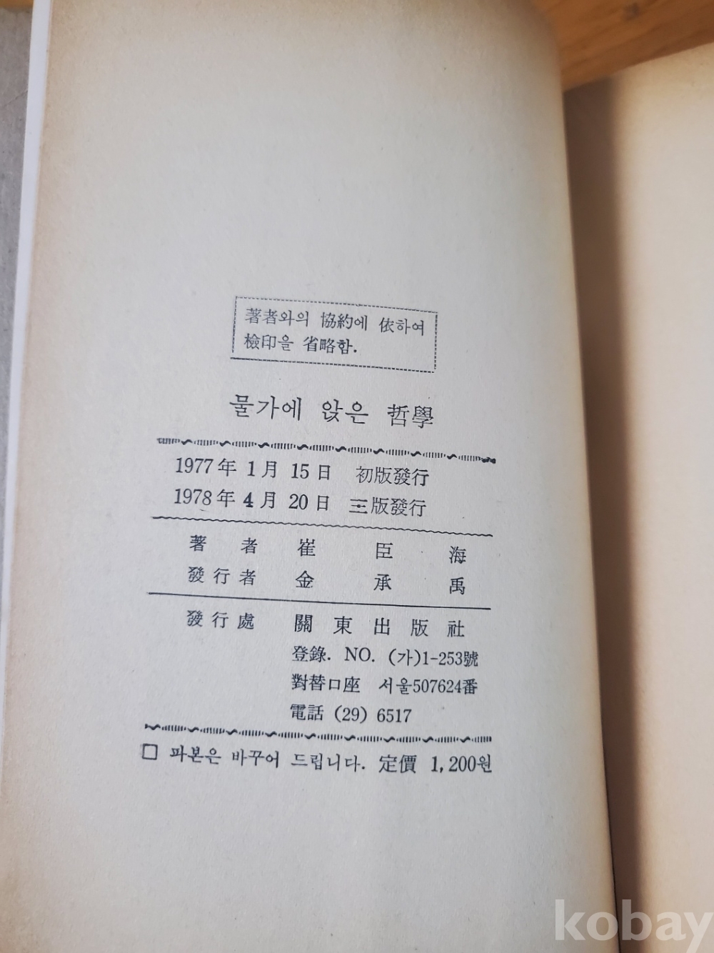 1. 물가에 앉은 철학, 최신해, 관동출판사, 1978년, 294쪽, 상태 상, 사진 참조