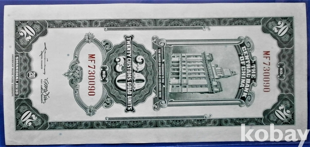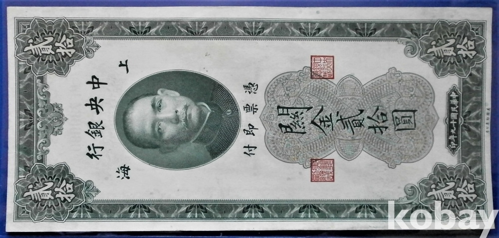 중국 중앙은행 20원 민국19년