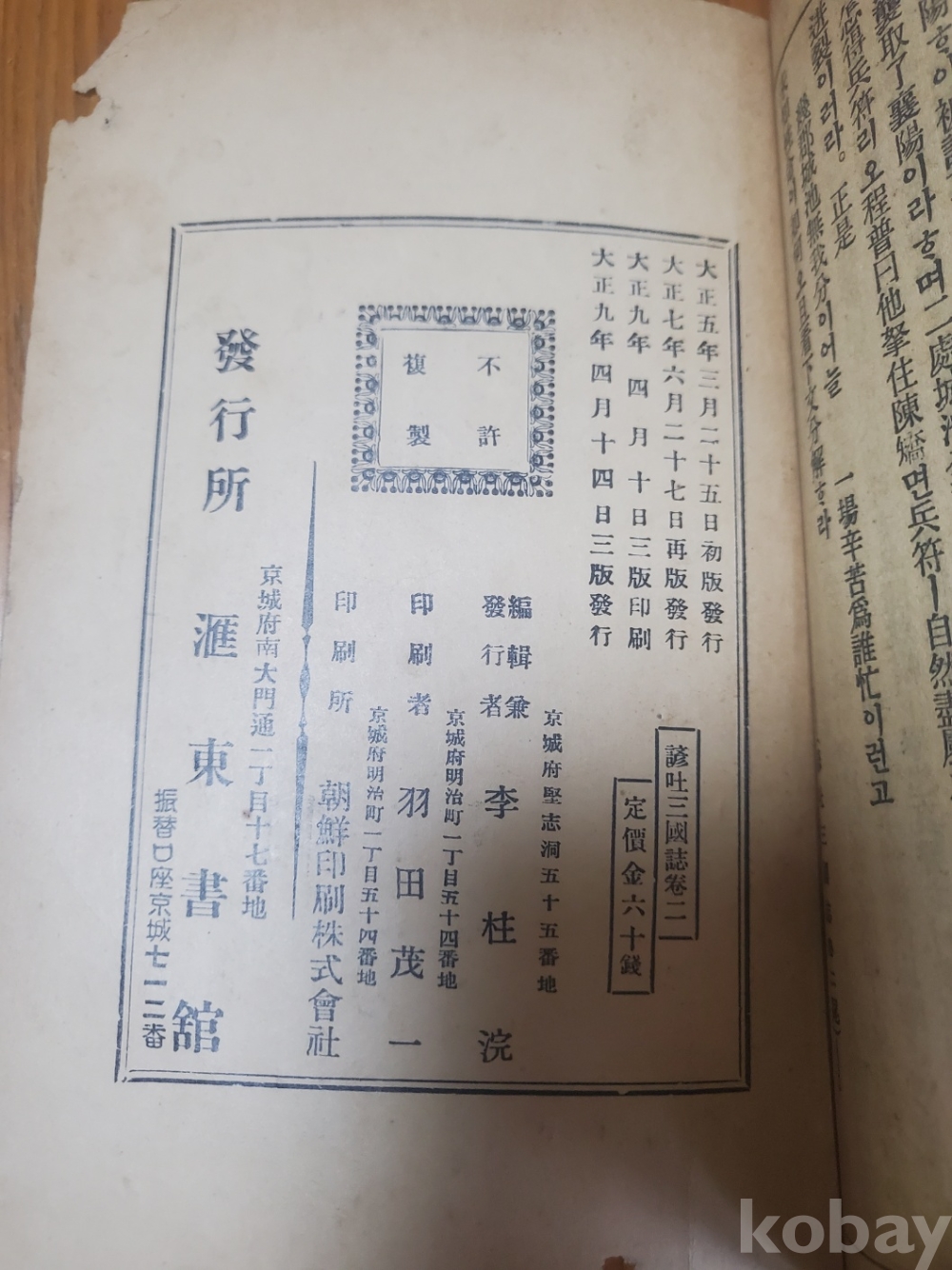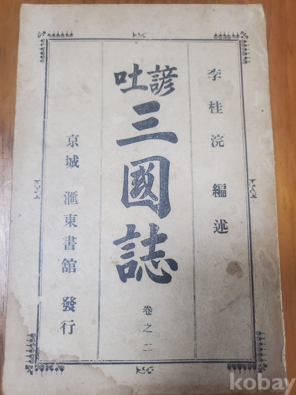1. 언토 삼국지 권지 2, 김주완 편술, 회동서관, 1920년, 466쪽, 상태 상, 사진 참조