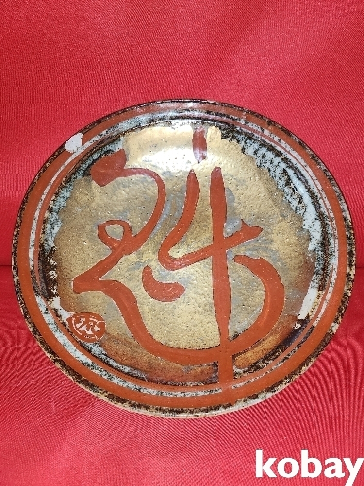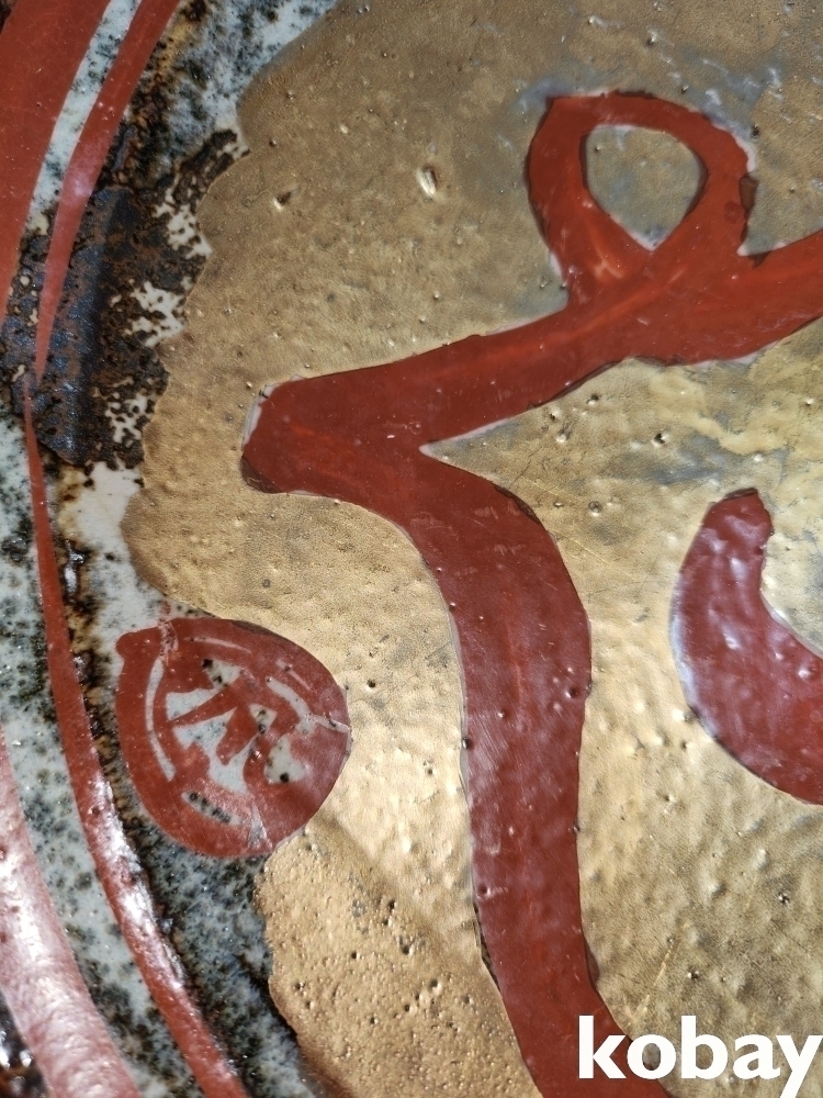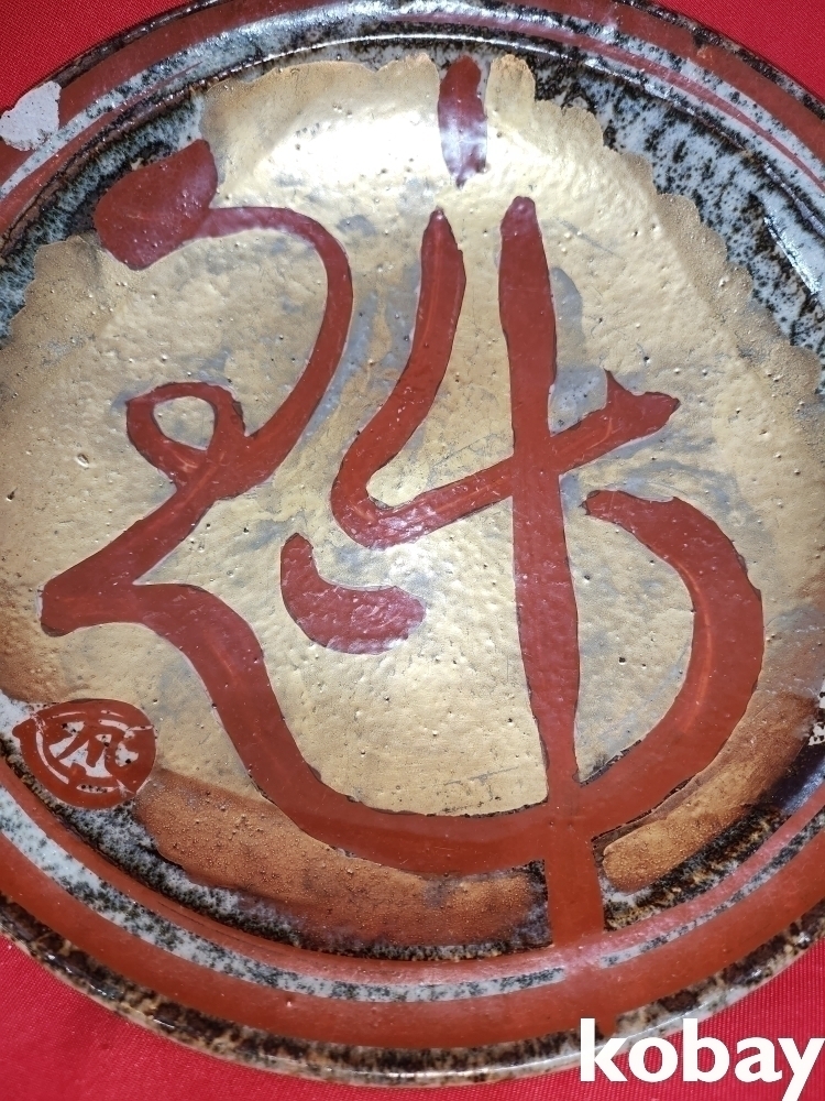 금채에 홍색 문자문 큰 접시입니다,