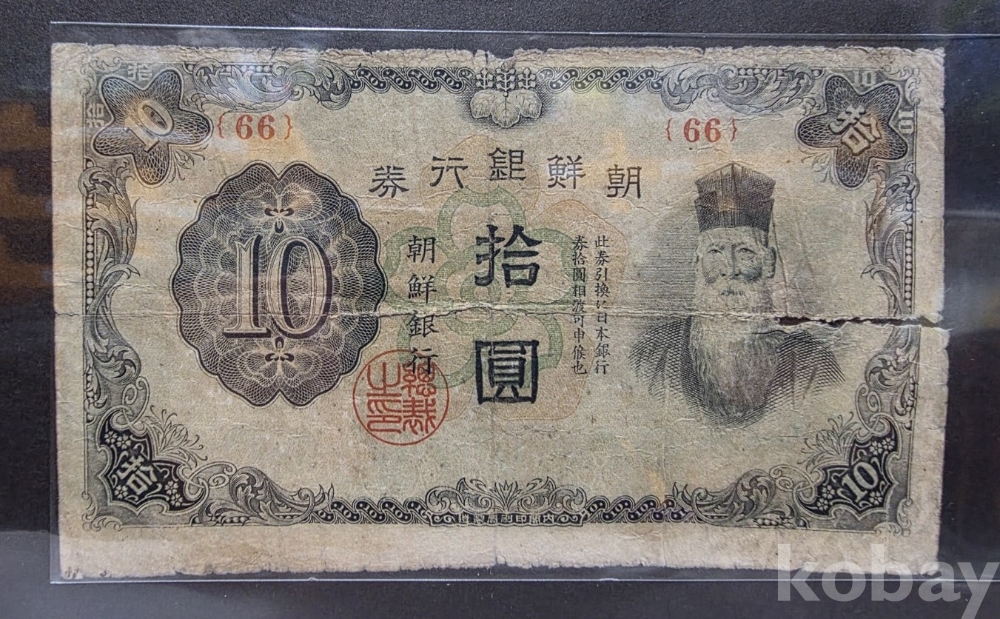 -대한민국 조선은행권 갑 10원 유번호 사용제 지폐이고 완벽하지 않습니다. 부족하니 참조해주세요..