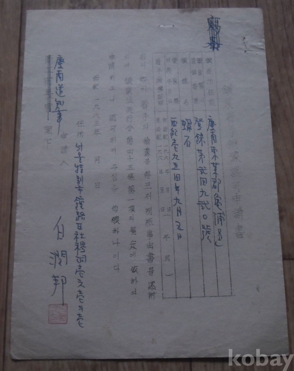 1963년 광업착수유예인가신청서