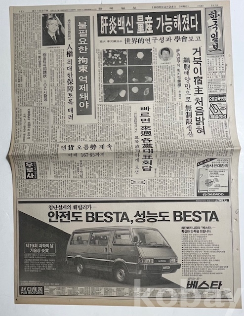 기아 베스타자동차 광고가 실린 한국신문 낱장입니다.