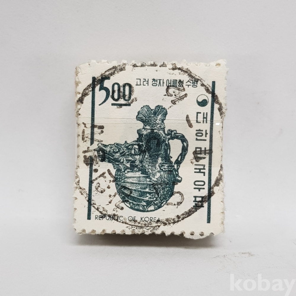 - 1960년대 신원화 보통 5원 청자어룡수병 일부인 미확인 사용제 우표 약 100매 묶음