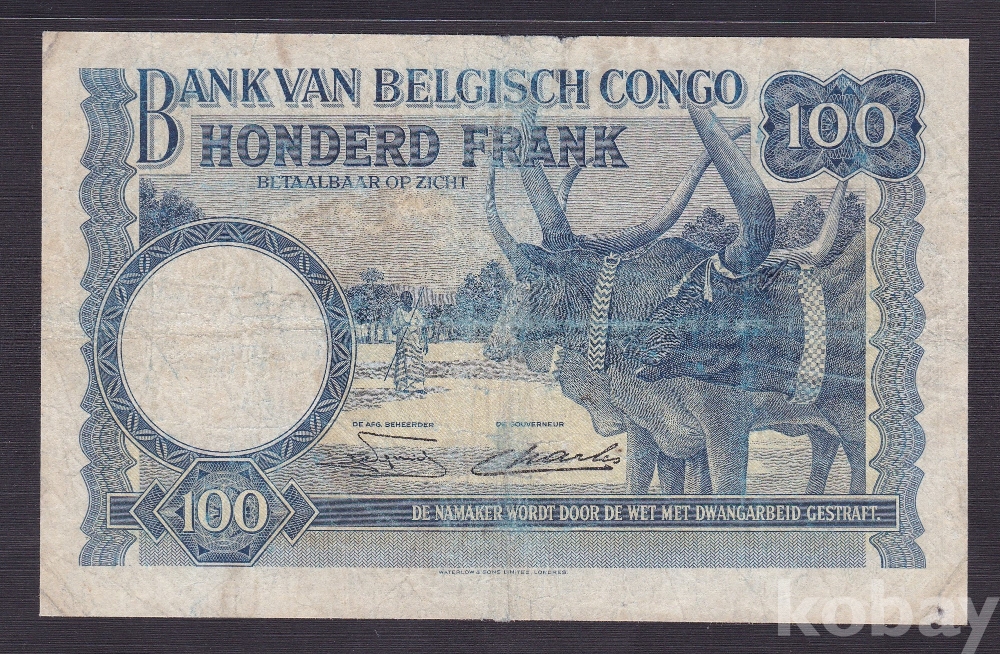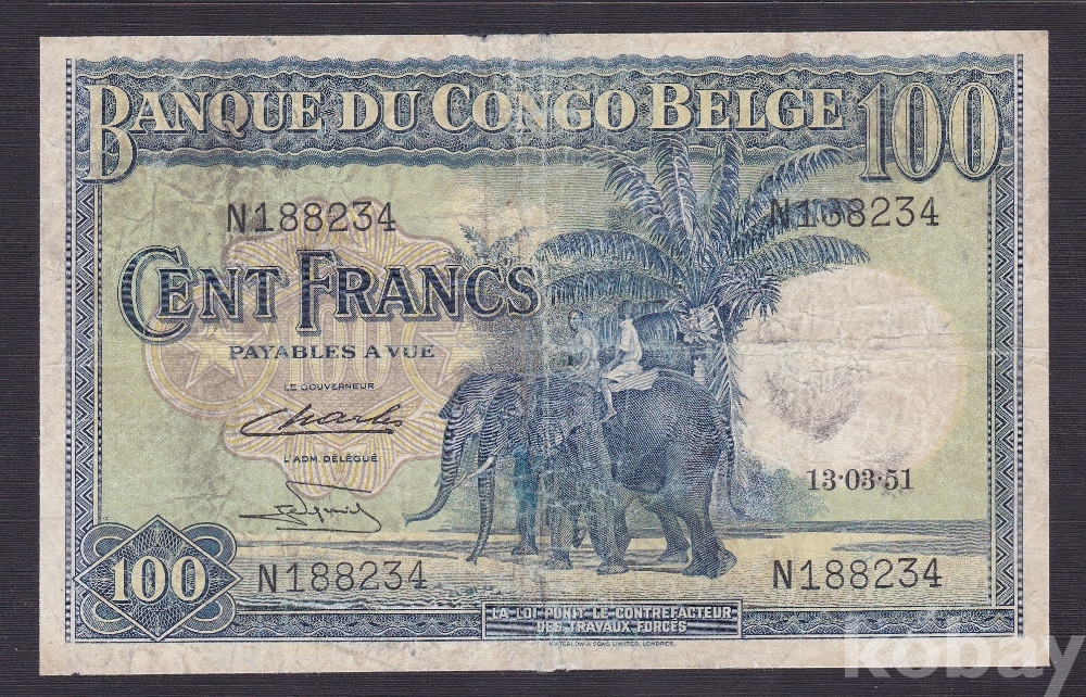 나라 : 벨기에령 콩고 액면 : 100 프랑