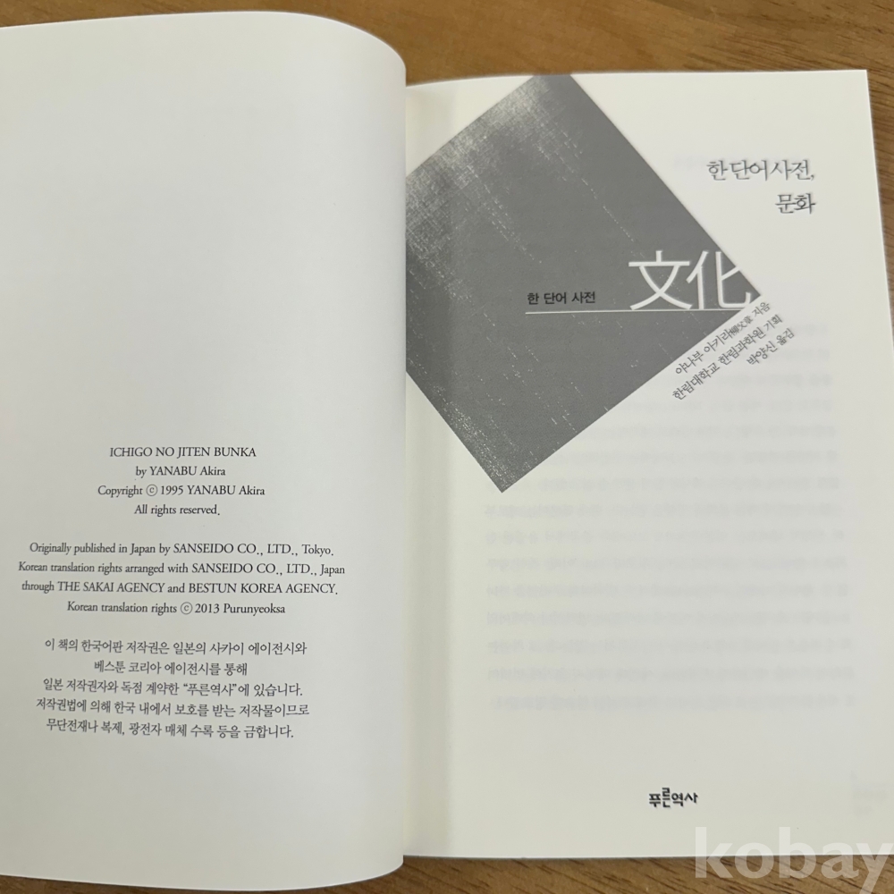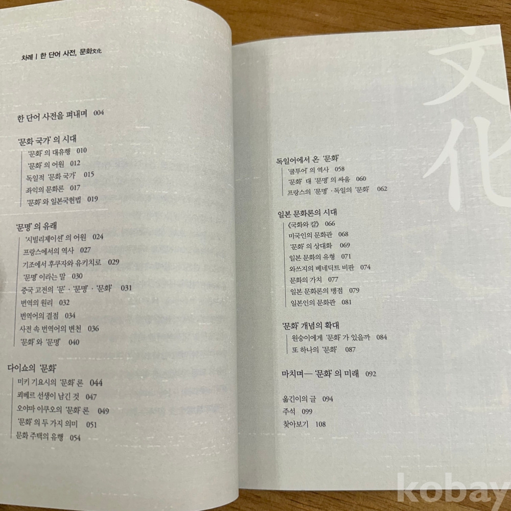 [개념사, 문화] 야나부 아키라 지음, 박양신 옮김, <한 단어 사전 : 문화>, 푸른역사, 2013, p. 111, 상태 중급(사진참조)